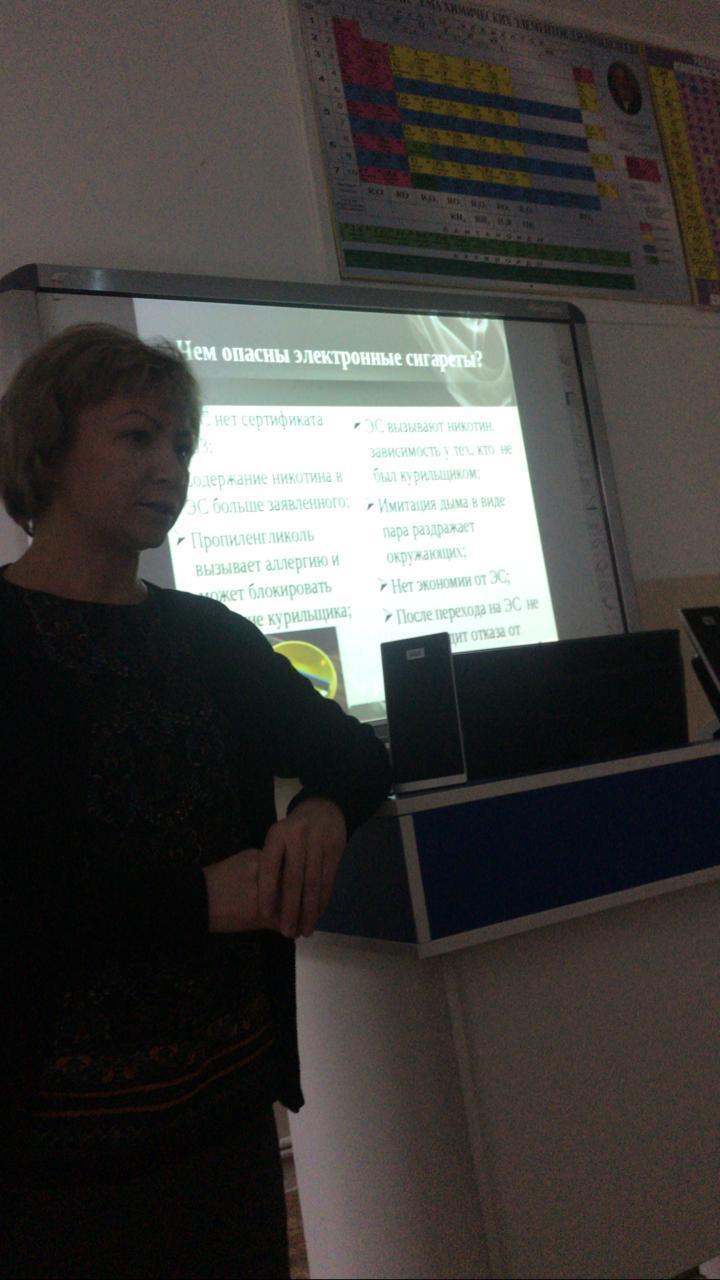 9 классах на тему «Курение. Электронные сигареты».Школьный медицинский работник Овчинникова Марта Афанасьевна рассказала детям о вреде табачных изделий на организм человека.