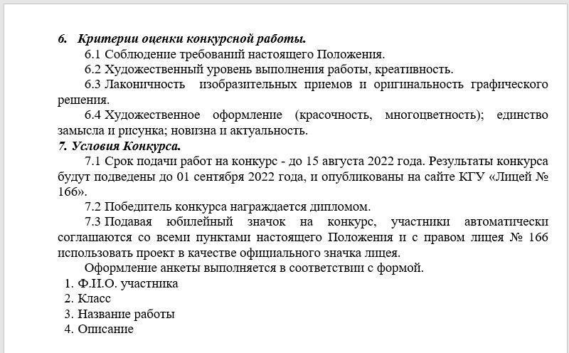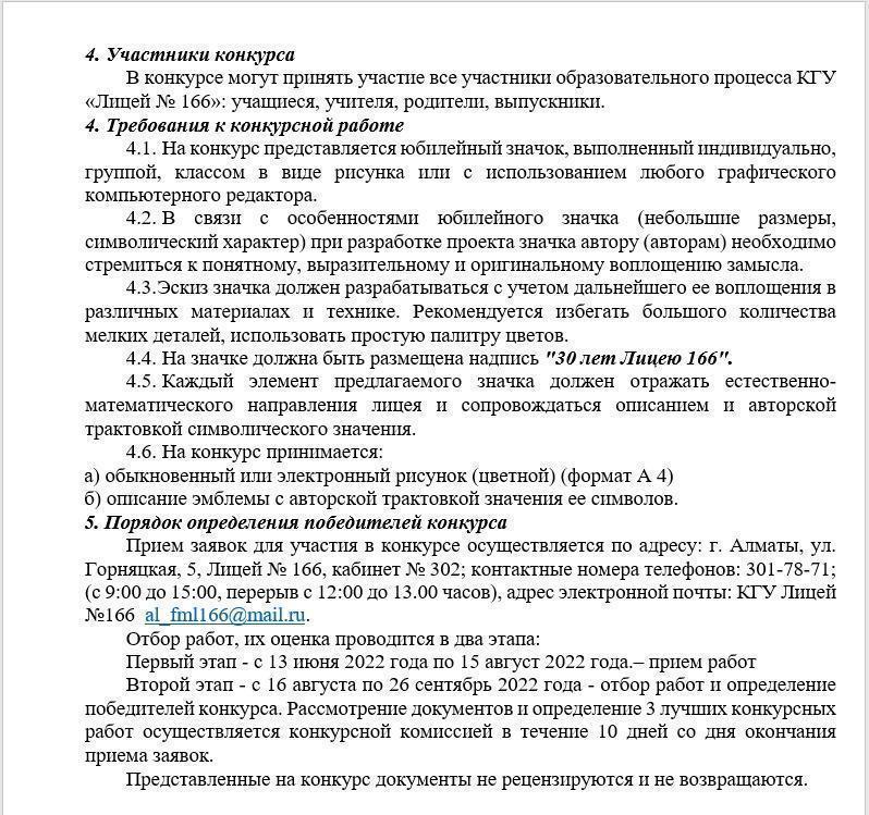10 июнь 2022 0 1 2 3 4 5 Положение о конкурсе на создание эскиза юбилейного значка к 30 летию лицея № 166 Осы беттің QR-коды:QR-код этой страницы: