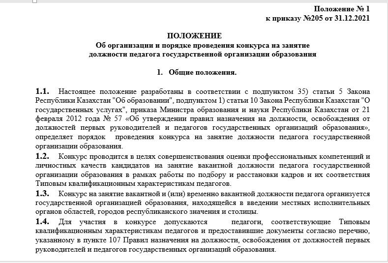 30 июль 2022 0 1 2 3 4 5 ПОЛОЖЕНИЕ Об организации и порядке проведения конкурса на занятие должности педагога государственной организации образования Осы беттің QR-коды:QR-код этой страницы: