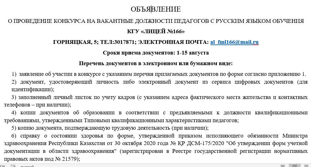 01 август 2022 0 1 2 3 4 5 ОБЪЯВЛЕНИЕ О ПРОВЕДЕНИЕ КОНКУРСА НА ВАКАНТНЫЕ ДОЛЖНОСТИ ПЕДАГОГОВ С РУССКИМ ЯЗЫКОМ ОБУЧЕНИЯ Осы беттің QR-коды:QR-код этой страницы: