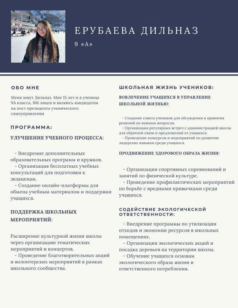11 май 2024 0 1 2 3 4 5 ПРЕДВЫБОРНАЯ ПРОГРАММА ДЛЯ ВЫБОРОВ В ПРЕЗИДЕНТЫ ШКОЛЫ ПРЕДВЫБОРНАЯ ПРОГРАММА ДЛЯ ВЫБОРОВ В ПРЕЗИДЕНТЫ ШКОЛЫКандидат на пост президента ученического самоуправления от 9 «А» класса – Ерубаева Дильназ Осы беттің QR-коды:QR-код этой страницы: