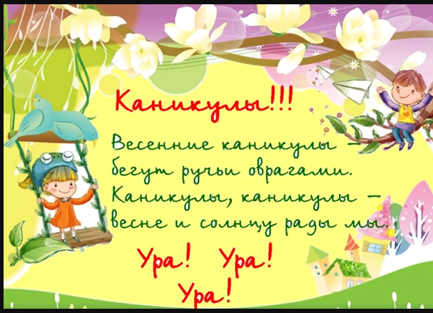 Желаем нашим ученикам хорошего отдыха во время весенних каникул.