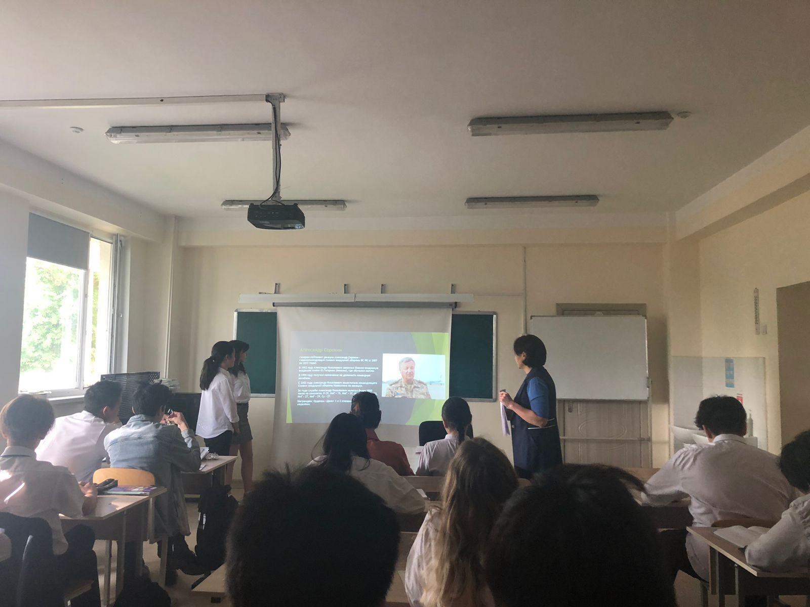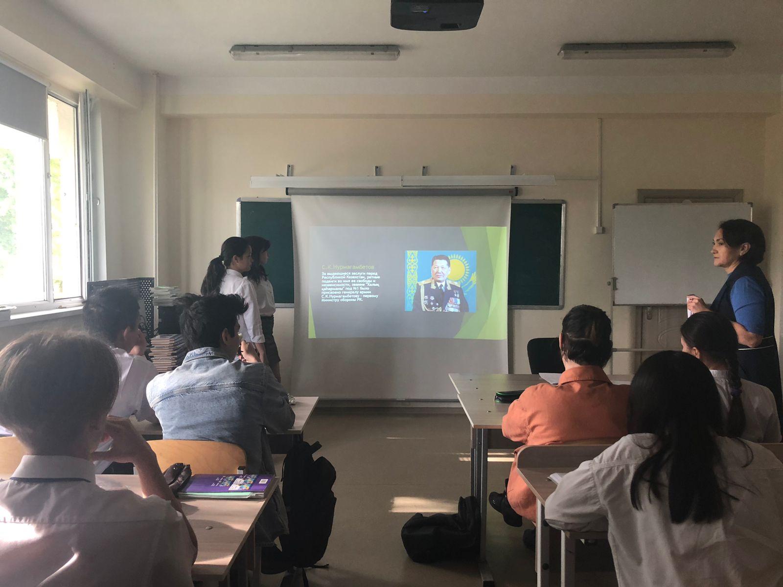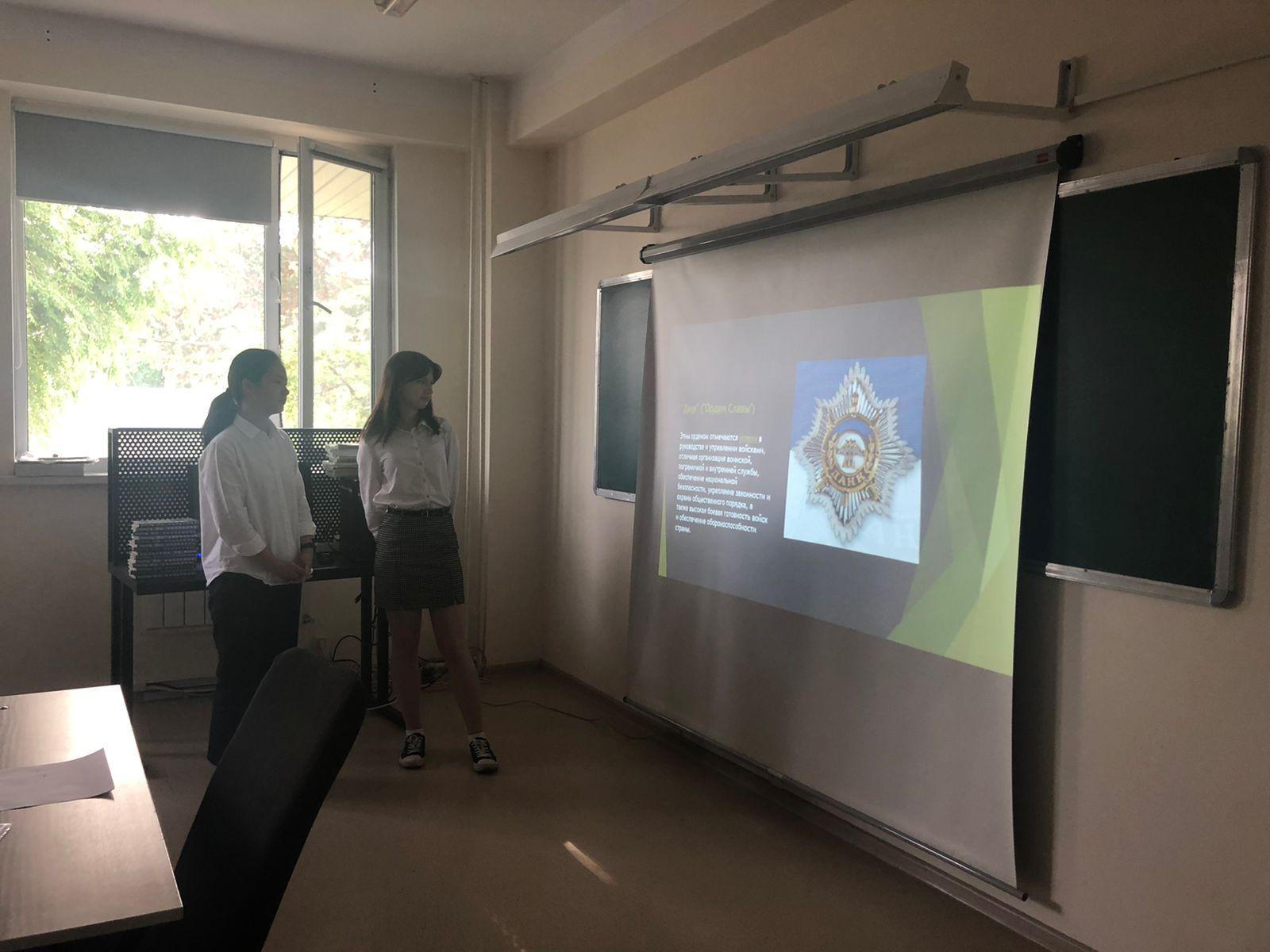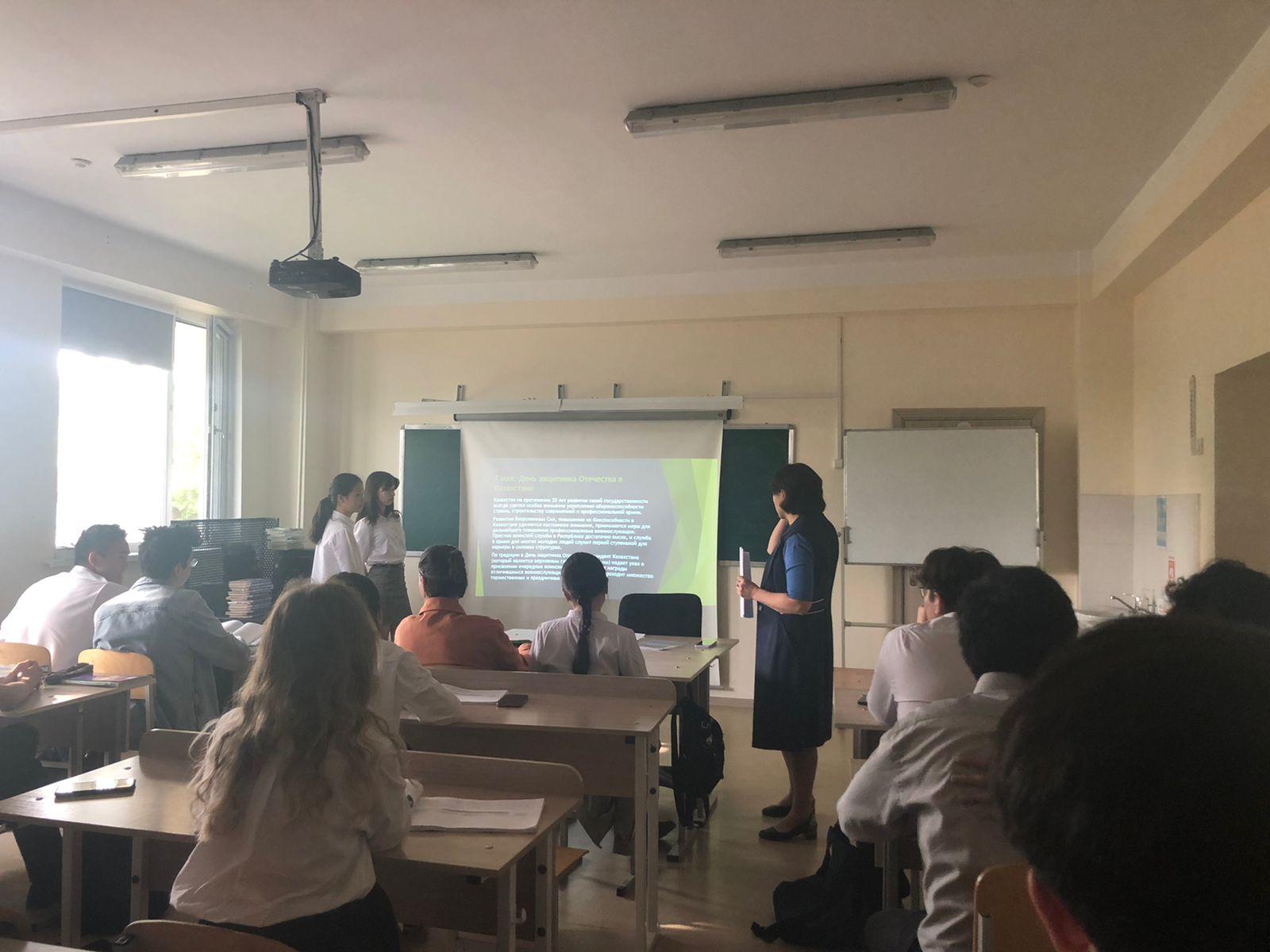 В 10 «А» классе КГУ «Лицей 166» был проведен классный час на тему « 7-мая –День Защитников Отечества РК. Награды Вооруженных Сил Казахстана»