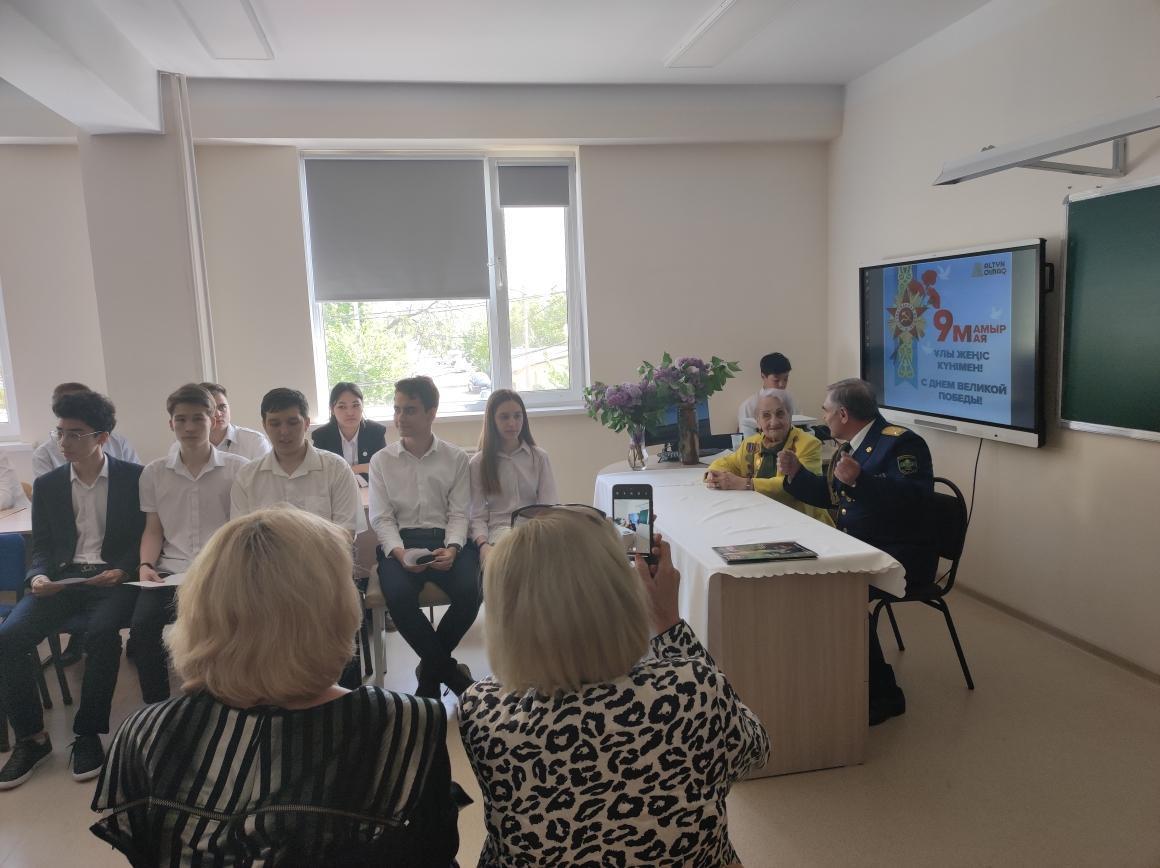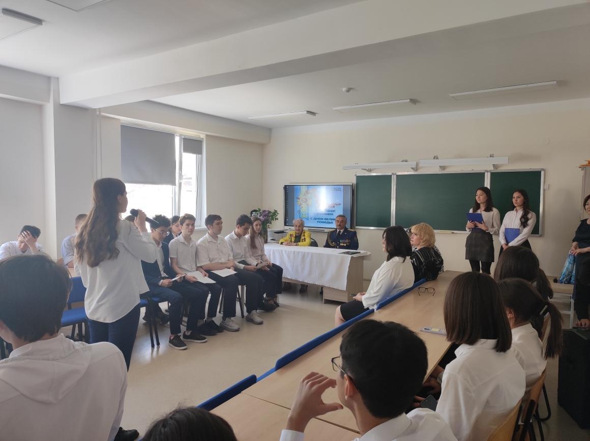 В КГУ «Лицей № 166» в очень тёплой, дружественной обстановке прошла встреча с участником ВОВ с Максимовой Тамарой Александровной. Тамара Александровна участница обороны Москвы, каваллер орденов "Отечественная война 1-й и 2-й степени, медали за оборону Москвы, председатель Попечительского совета общественного фонда "Совет ветеранов ВОВ, тружеников тыла и детей войны".