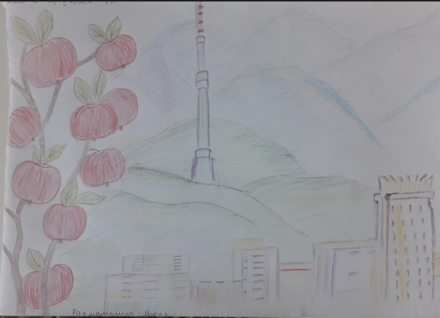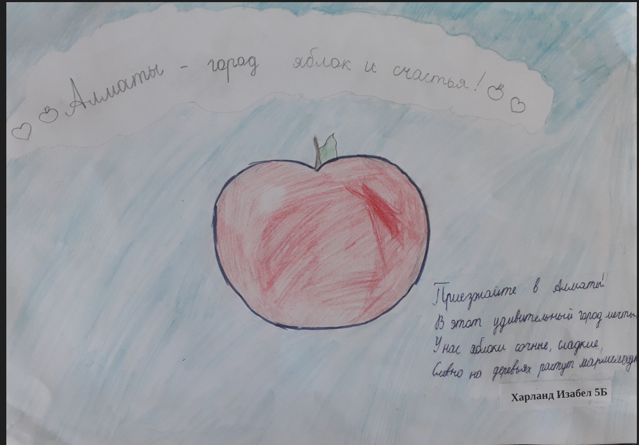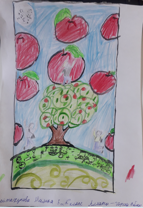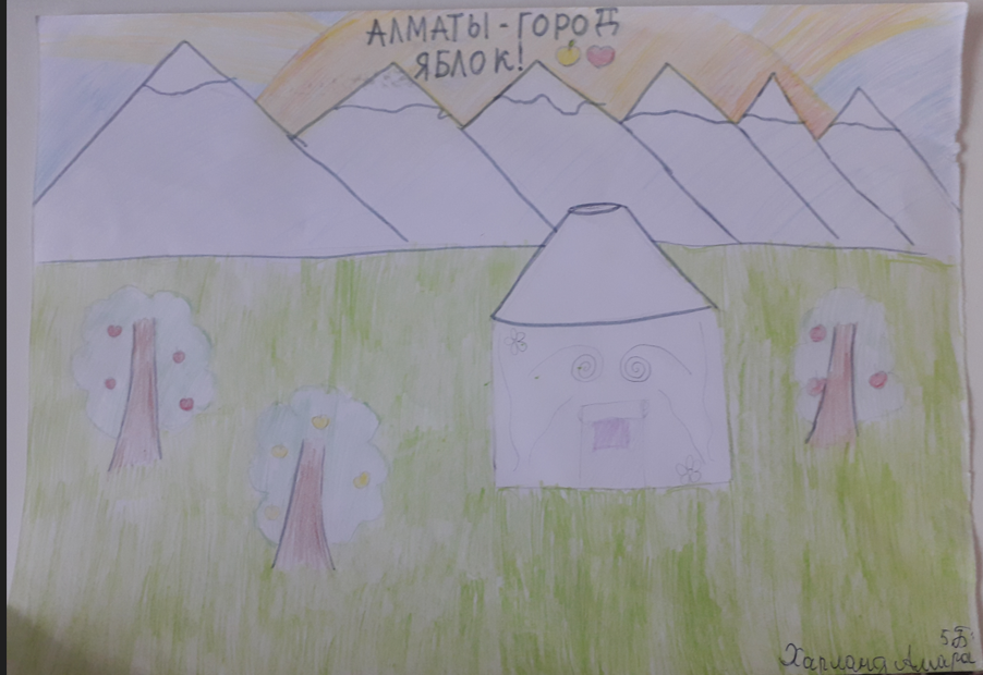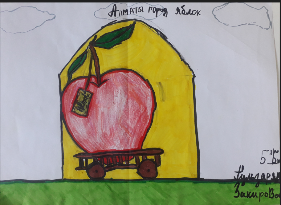 Ко Дню города Алматы среди учащихся 5-х классов КГУ "Лицей № 166" был организован конкурс рисунков на тему "Алматы - город яблок". Цель: воспитывать у детей любовь к Родине и патриотические чувства, интерес к городу Алматы, уважение к людям, проживающих в нем. Самой яркой картиной было признано произведение Супиевой Самиры, ученицы 5" В " класса.