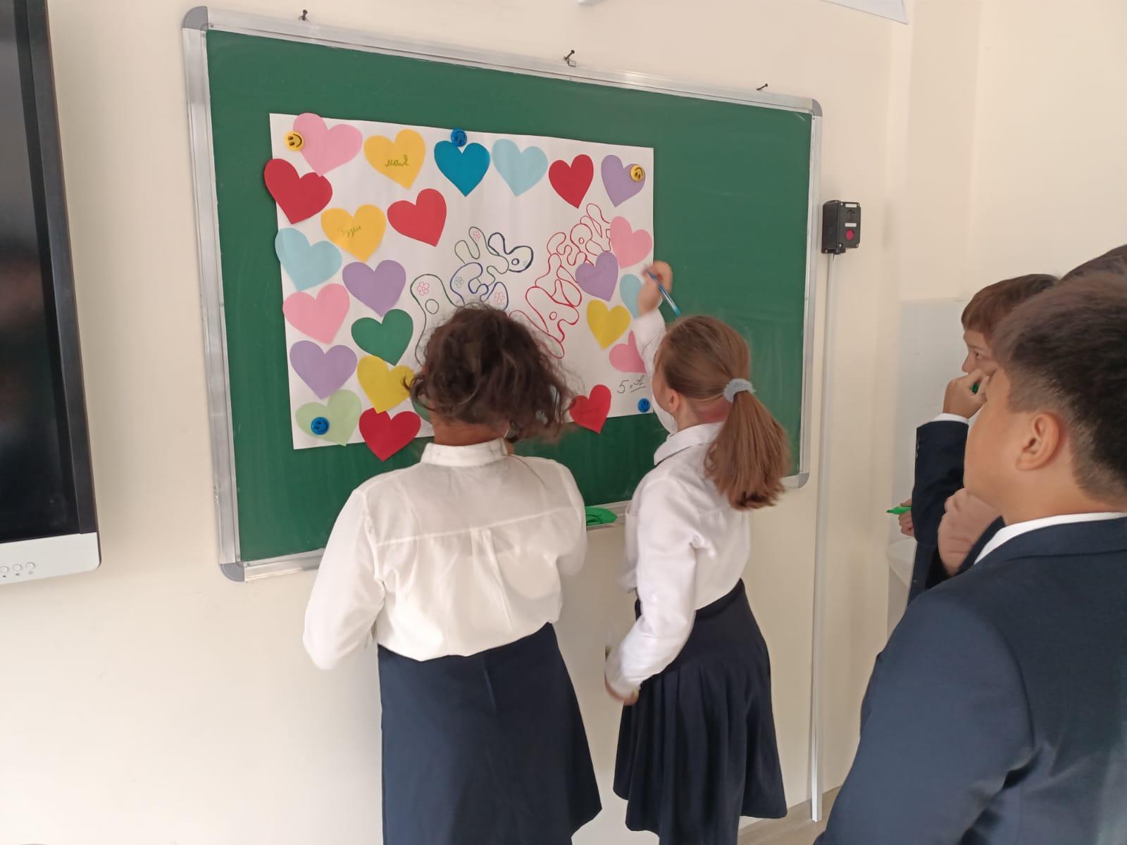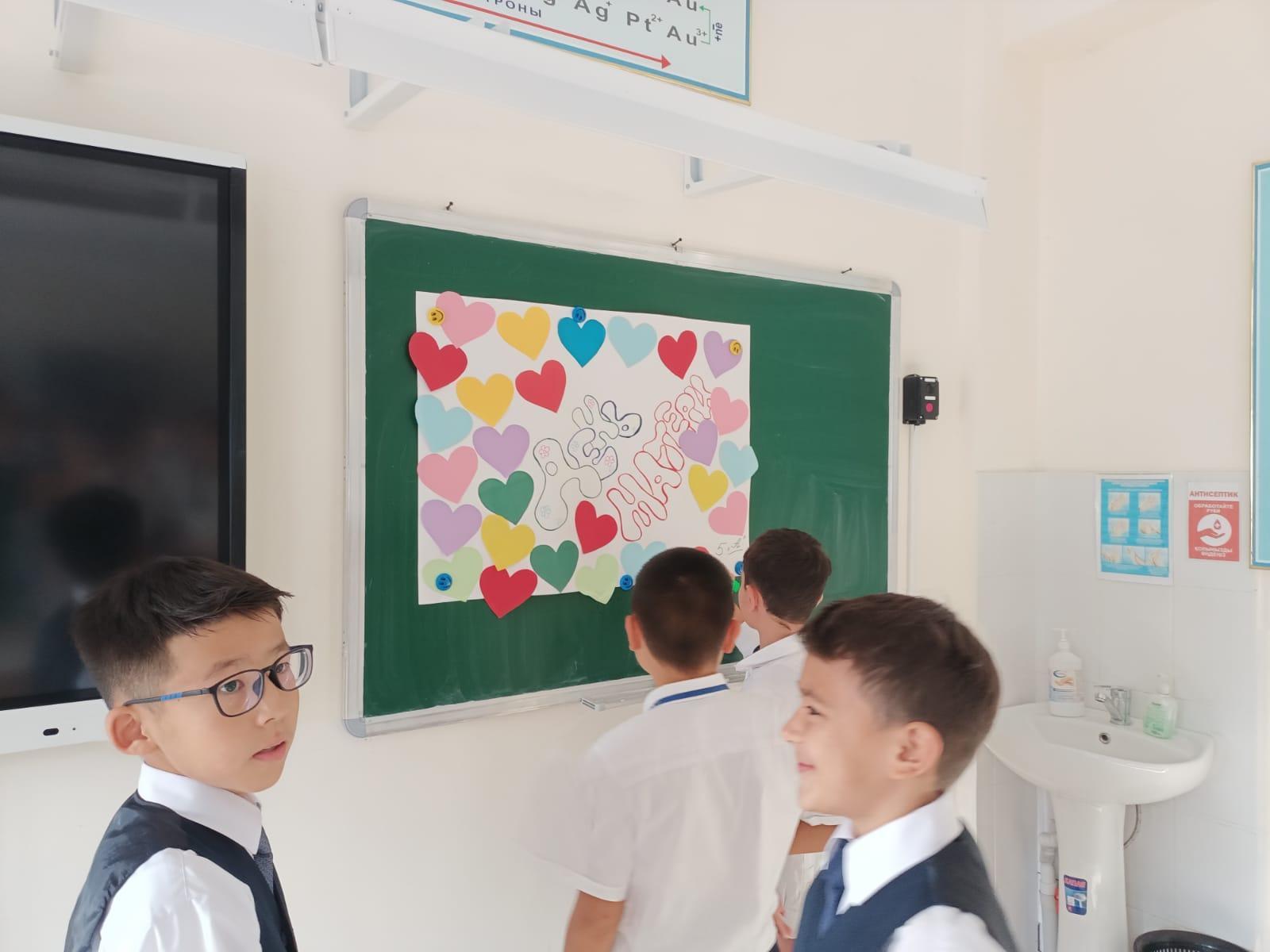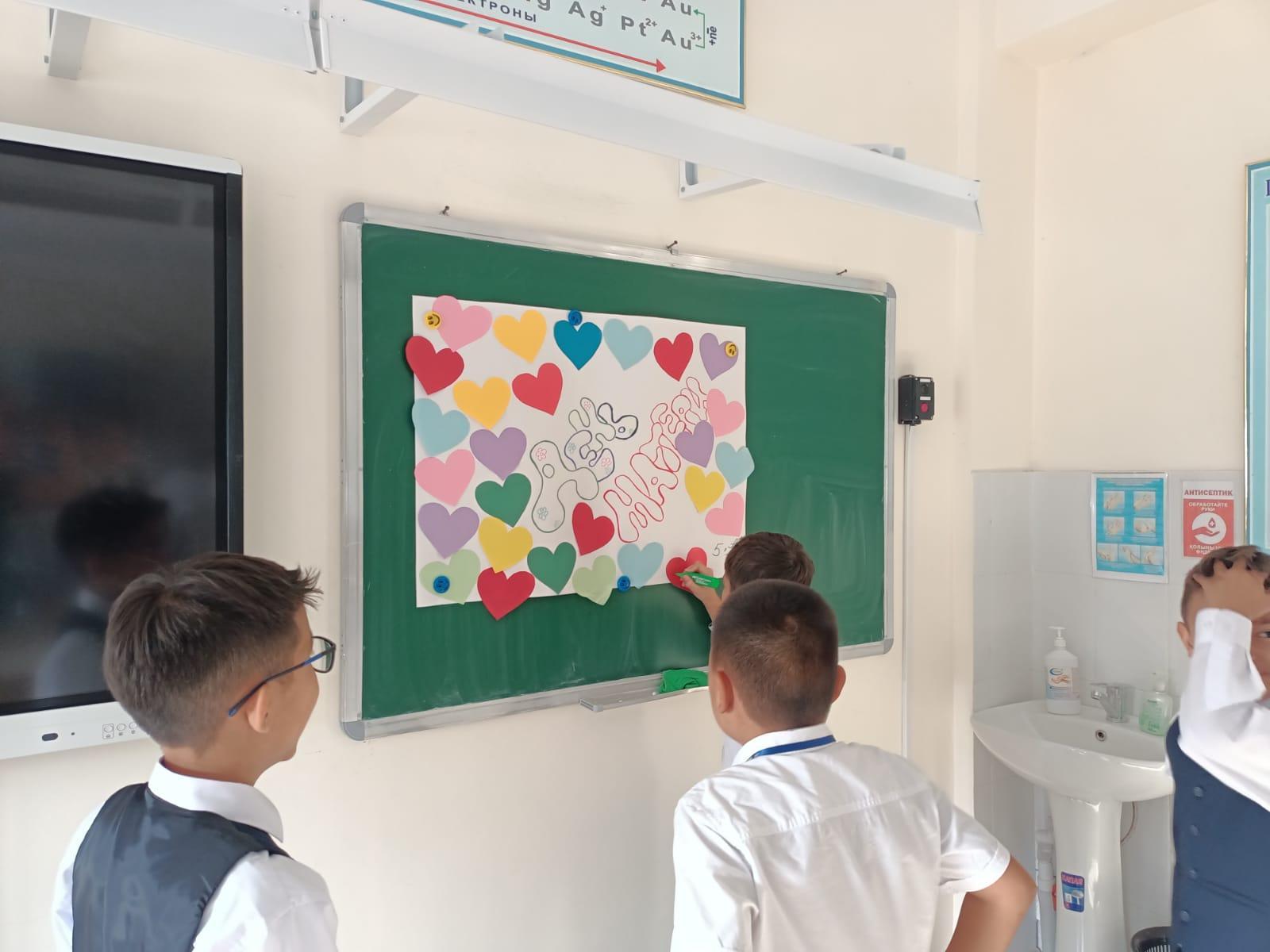 18 сентября 2022 года в 5 «А» классе КГУ «Лицей № 166» проведен классный час на тему: «День матери в Казахстане». Виктор Али и Тен Тимур подготовили презентацию об этом празднике. Ребята рассказали стихотворения, посвященные мамам, подготовили постер, где дети должны были на сердечках о своих мамах.