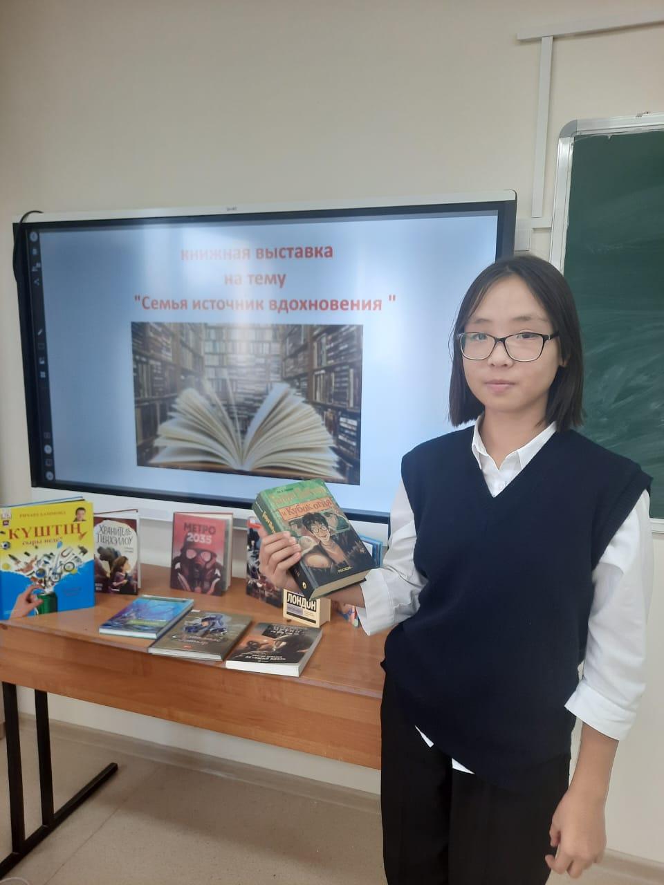 27 сентября 2022 года в 7 «А» классе КГУ «Лицей № 166» прошла книжная выставка на тему "Семья источник вдохновения ".