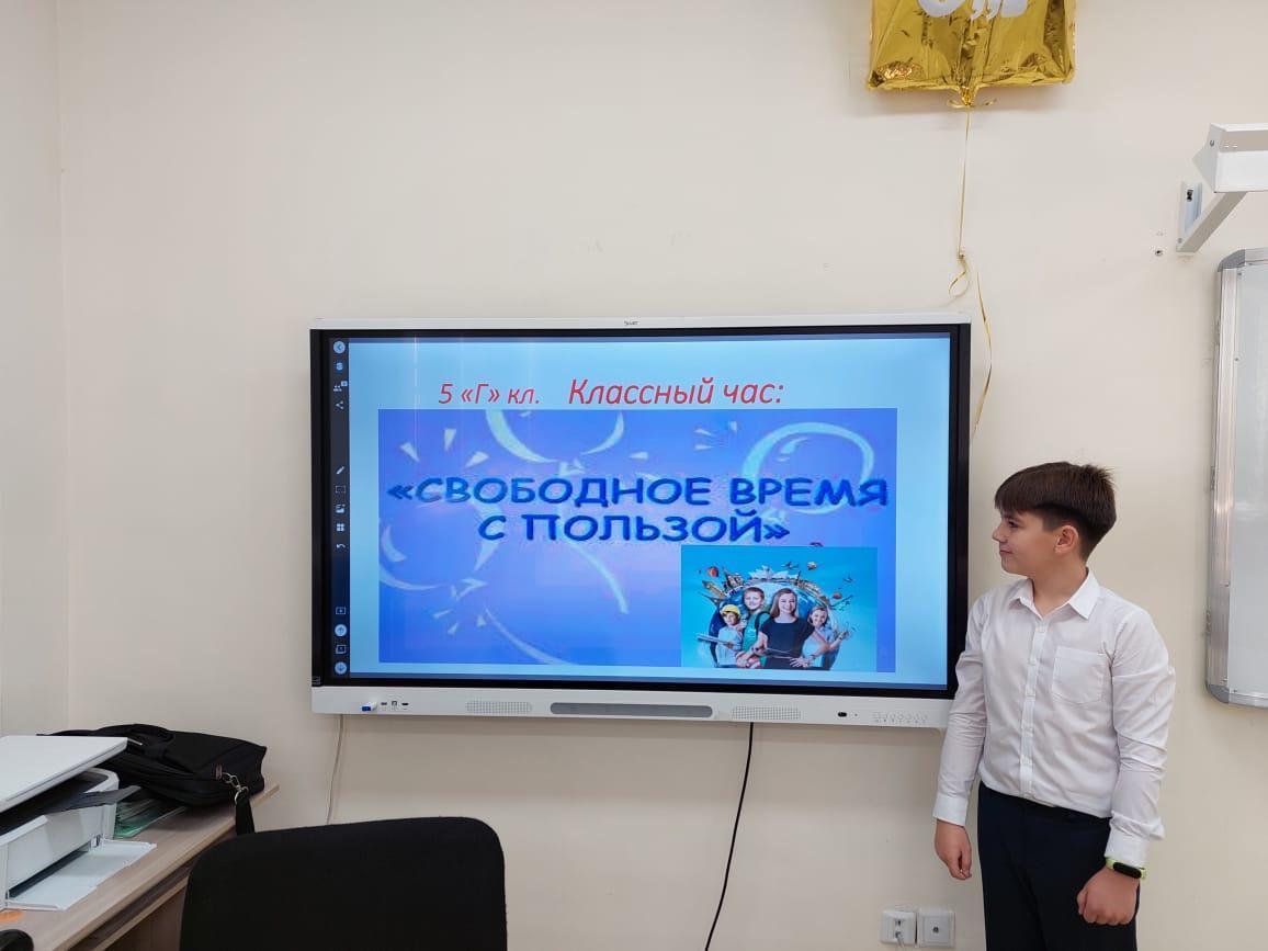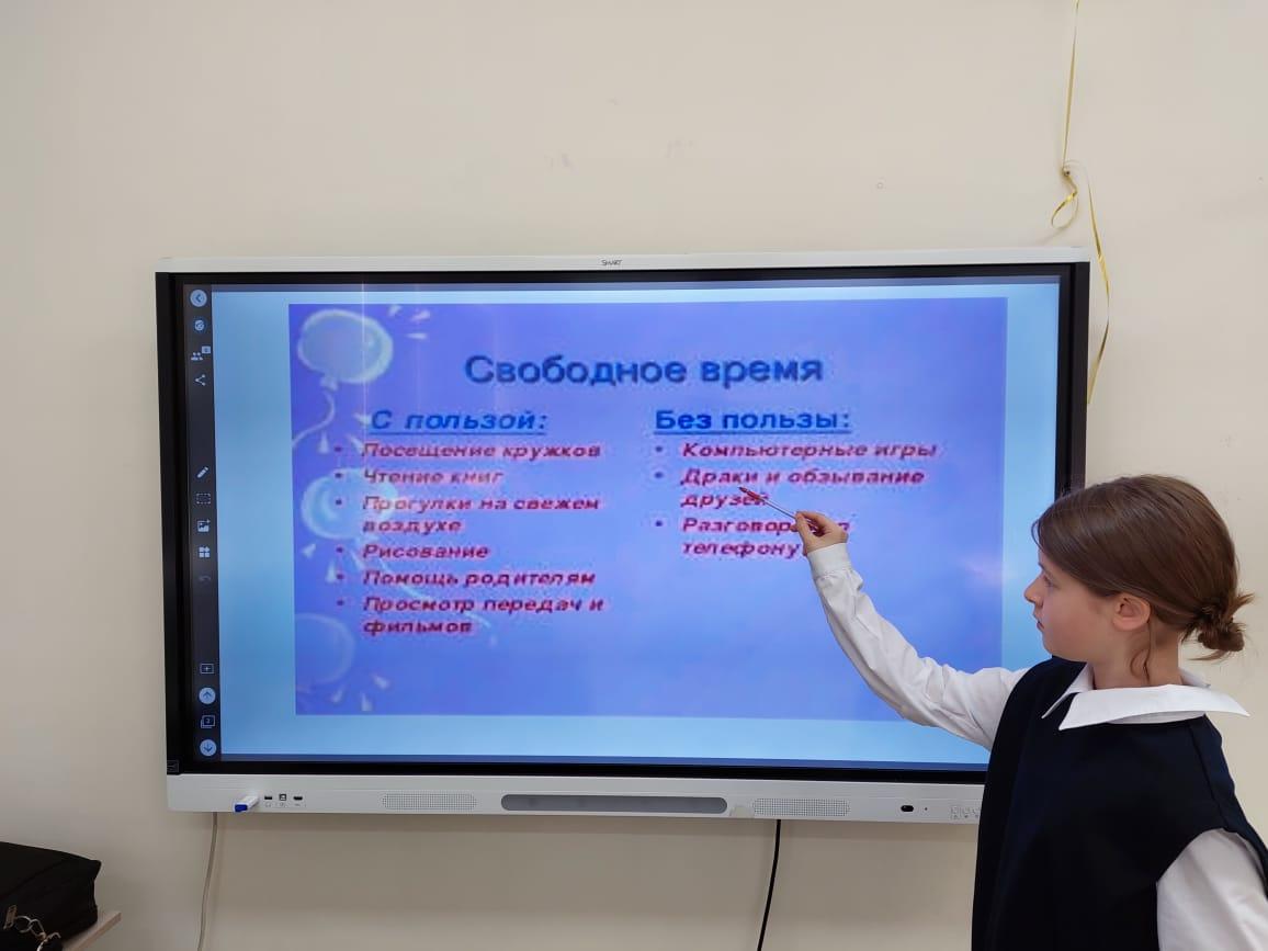 Учащиеся приготовили презентацию с фотографиями, показывающими, как они проводят своё свободное время. Ребята рассказывали о том, как с пользой можно отдыхать в свободное время