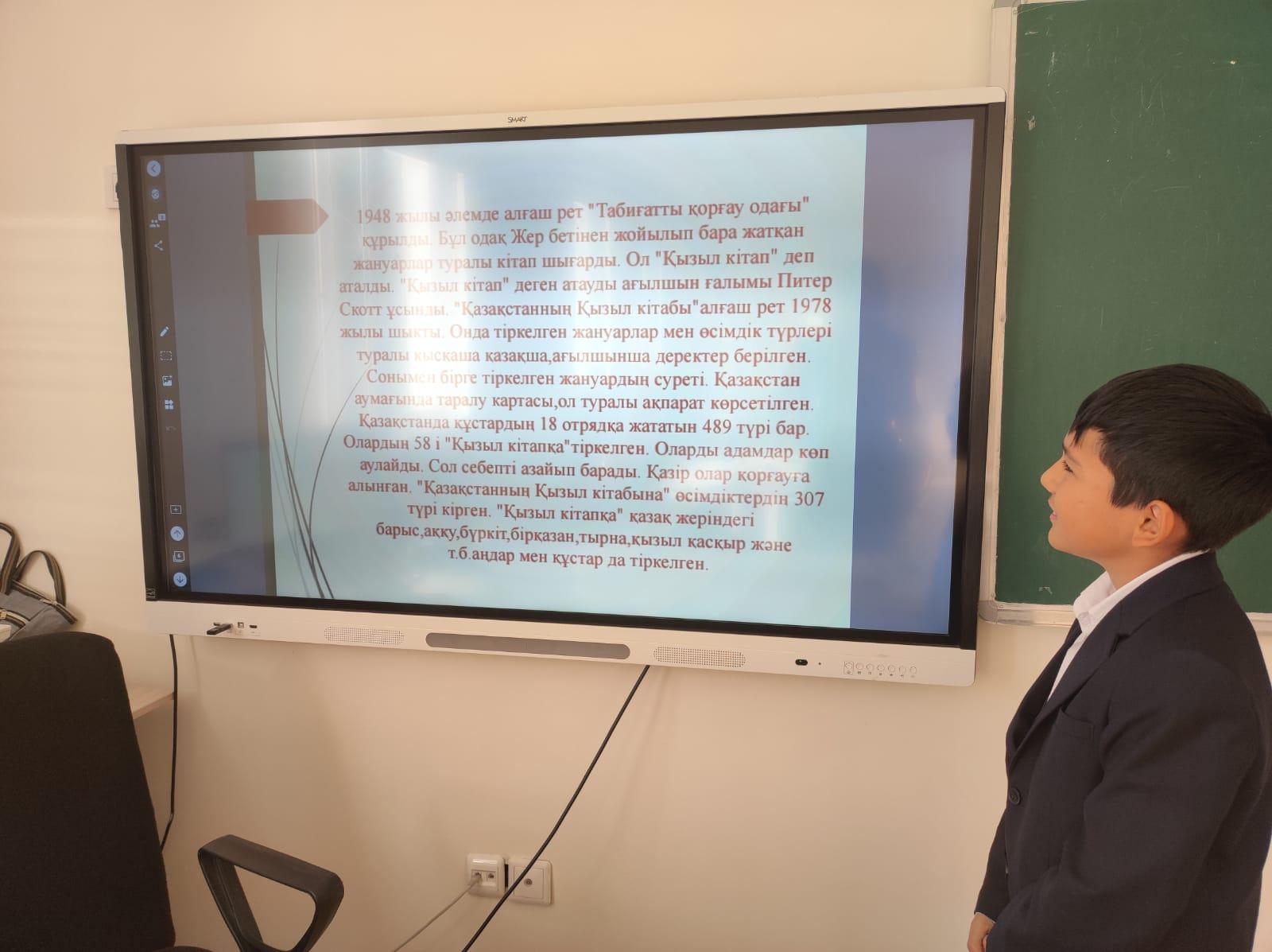 2022 жылдың 3-13 қазан күндері аралығында «№ 166 лицей» КММ-сінде қазақ тілі мен әдебиеті пәнінің онкүндік жоспары негізінде пән мұғалімі Лекимова Ш.Л. 13 қазан күні 5 «Г» сынып оқушыларымен «Қызыл кітап» тақырыбында ашық сабақ өтті. Сабақ барысында оқушылар «Қызыл кітап» туралы тереңірек түсінік алып, кітапқа енген жануарлар туралы ой бөлісті. Сабақтың басында WORDWALL қосымшасында сәйкестендіру әдісі арқылы оқушылар өткен бөлімді қайталады. «Қызыл кітап» туралы мәліметтерді ала отырып, диаграмма толтырды. Сабақты қорытындылау үшін «дұрыс-бұрыс» әдісі, кері байланысқа «еттартқыш» әдістері қолданылды.