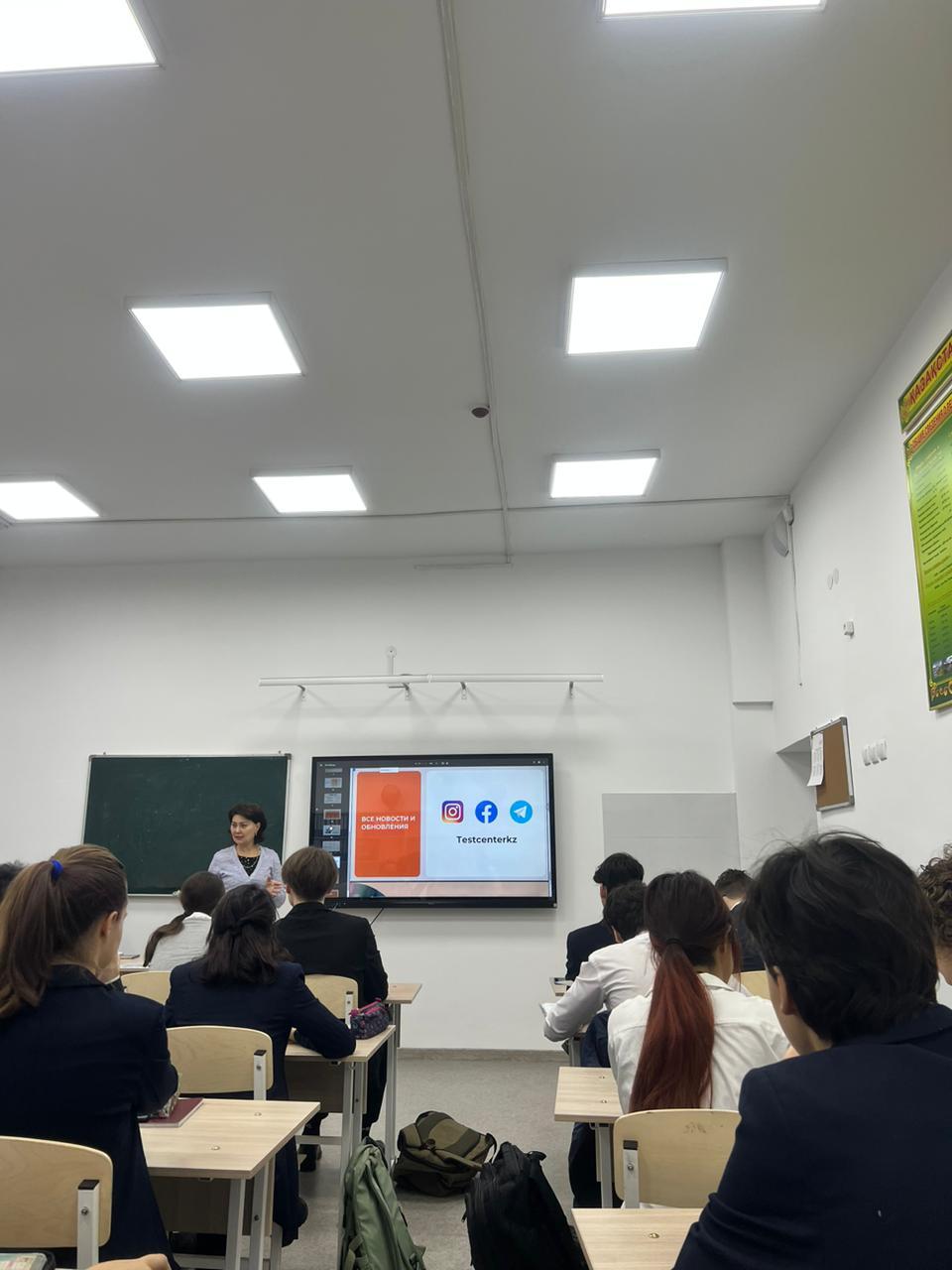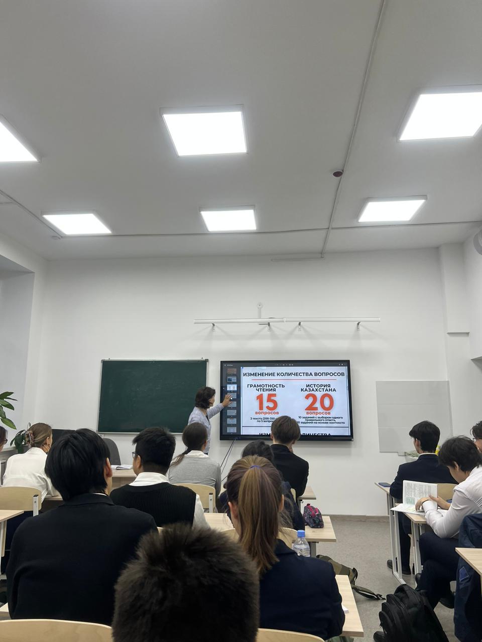 КММ «№166 лицей» 11 «Б» сыныбында «ҰБТ – жаңа формат» тақырыбында сынып сағаты өтті. Сынып сағатының мақсаты: Оқушыларға ҰБТ тапсыру қажеттілігін көрсету. ҰБТ мен емтиханға дайындық кезеңінде өзін-өзі ұстау тактикасын қалыптастыру. Өтілген материалды қайталауға, күндер мен оқиғаларды еске түсіруге жарты жылдан сәл астам уақыт қалды. Білімге мән беру керек. Емтихандарға және ҰБТ-ға дайындалу керек, сырттан көмекке сенбеу, қосымша сабақтар мен кеңестерге қатысу керек.