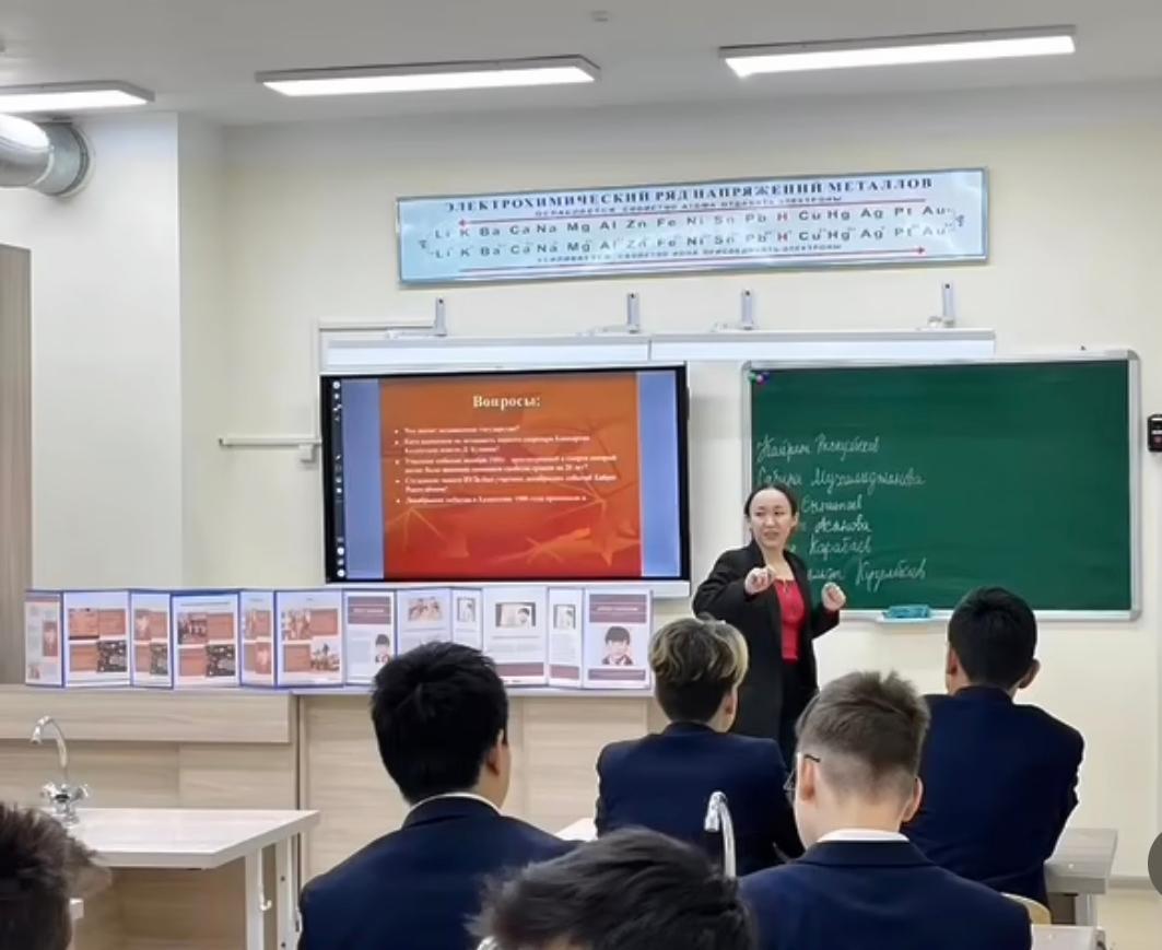 «№166 лицей» КММ 8 «Б» сыныбында «1986 жылғы Желтоқсан оқиғасының алты батыры» тақырыбында сынып сағаты өтті. Мақсаты: балаларға біртуар тұлғалар, тәуелсіздік жолындағы күрескерлер туралы мағлұмат беру, отансүйгіштікке, Отанға деген сүйіспеншілікке тәрбиелеу. Балалар қазақ жастарының намысын оятқан алты батырдың рухына тағзым етіп, олардың өмірбаяндарымен танысты.