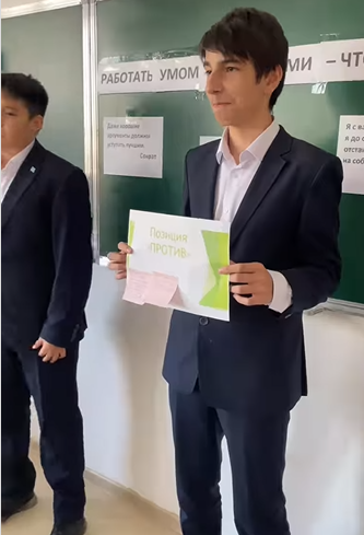 25 ноября в КГУ “Лицей 166” среди учащихся 7-ых классов был проведен дебат на тему «Работать умом или руками-что лучше?», организованный учителем русского языка и литературы Мергенбаевой А.Е. Целями мероприятия было развитие воспитания у учеников совершенствование ораторских и лидерских качеств, а также критического мышления. Игрокам удалось раскрыть тему дебата.