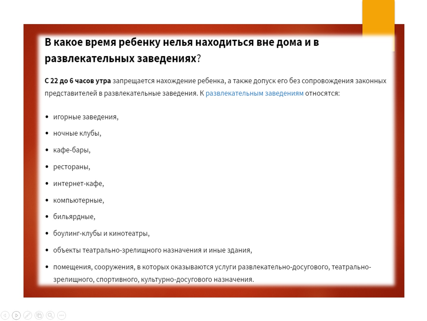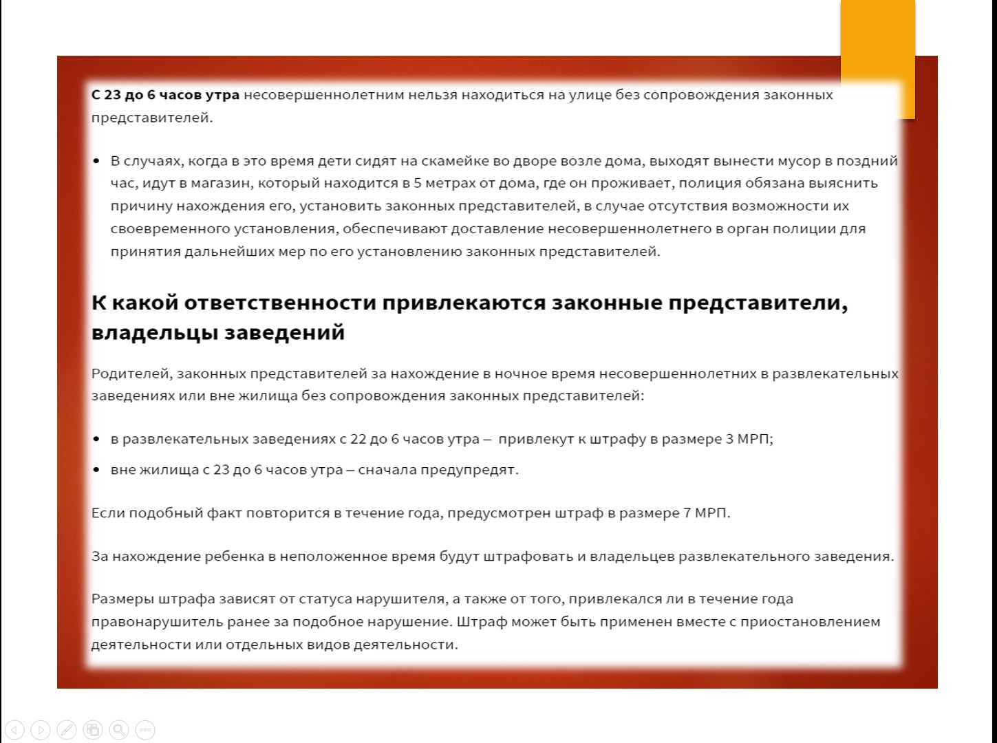20 февраль 2023 0 1 2 3 4 5 Кәмелетке толмағандардың түнде жүруі туралы. Кәмелетке толмағандардың түнде жүруі туралы. Бұл тыйым кімге қатысты? Түнгі уақытта қайда жүруге болмайды? Баламен кім болуы керек? Айыппұлдар туралы Осы беттің QR-коды:QR-код этой страницы: