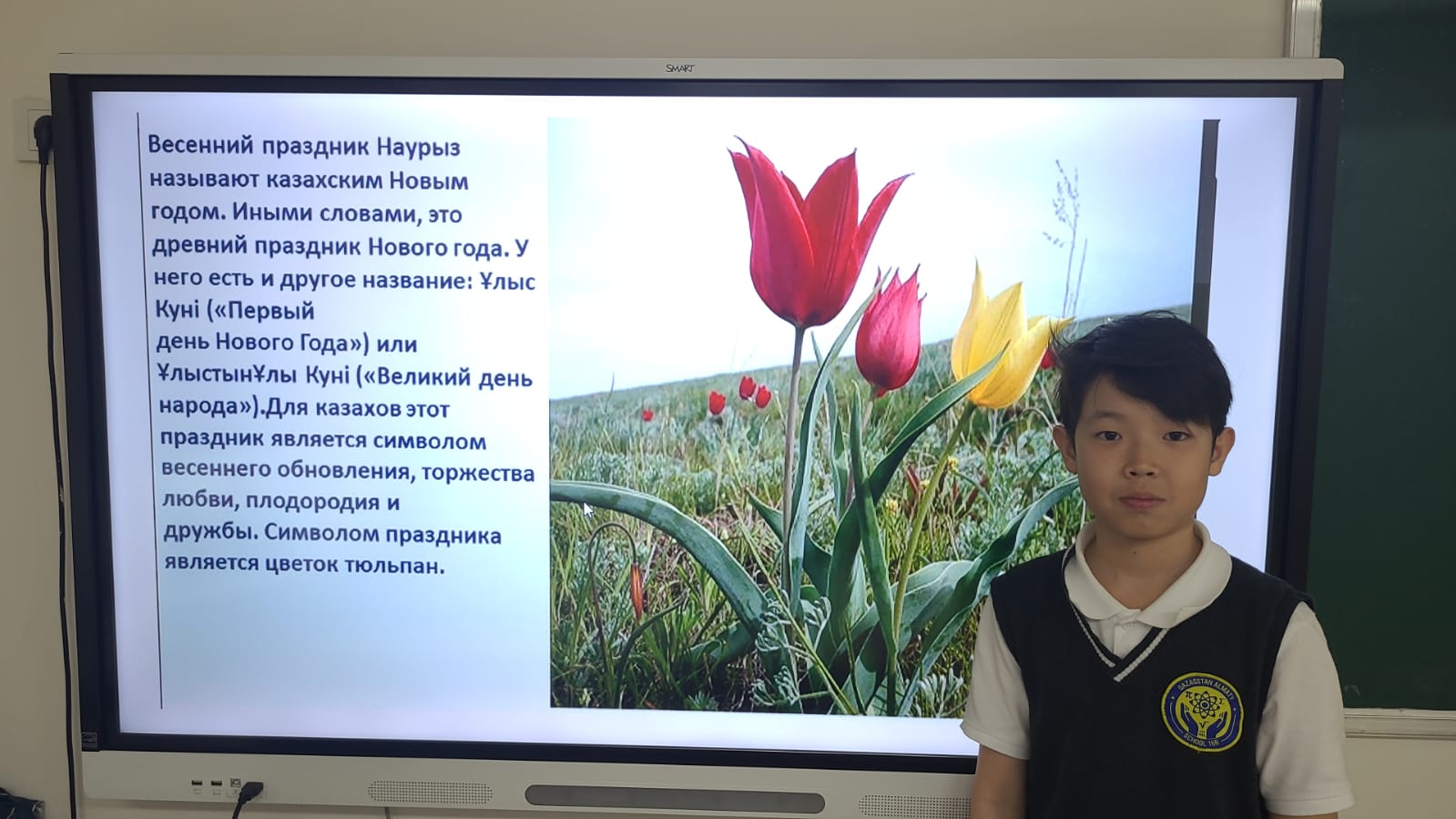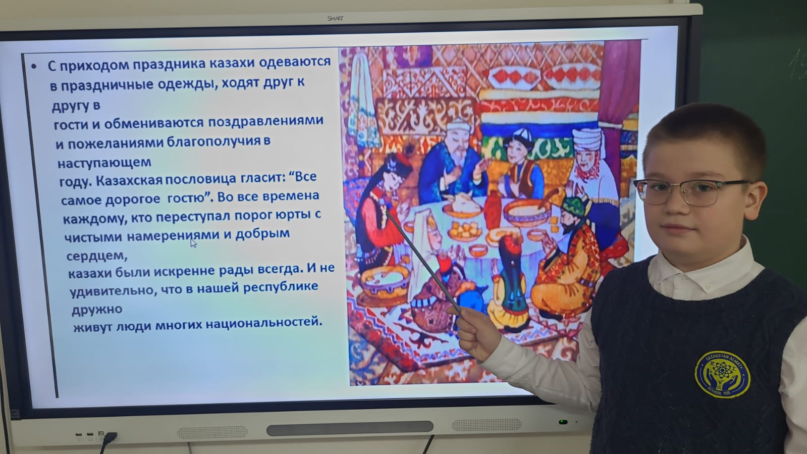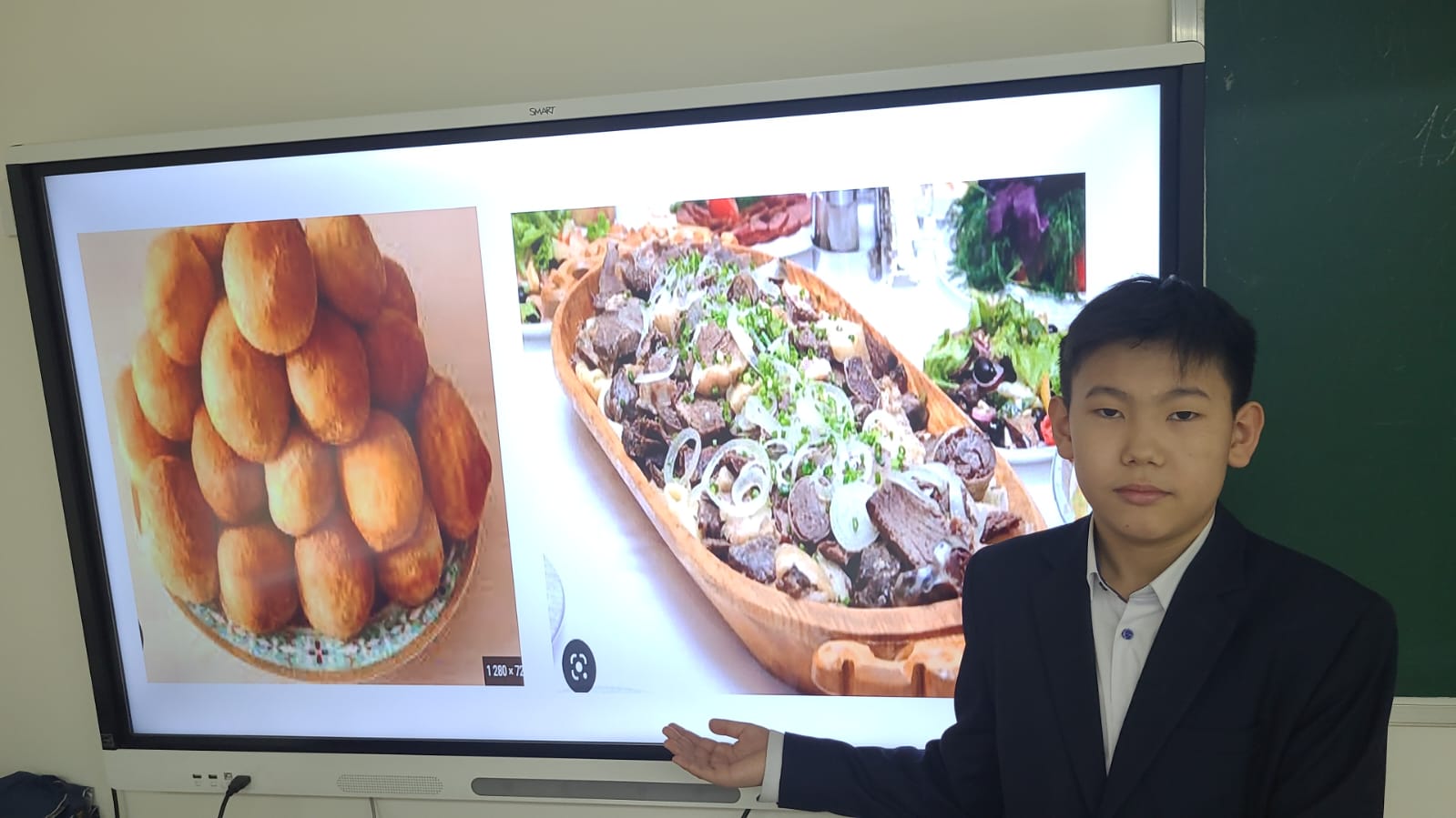 В 5 «Б» классе КГУ «Лицей № 166» прошел классный час на тему: День национальной кухни. Ұлттық тағам. Дети называли казахские национальные блюда, узнали как готовится «Наурыз көже», который включает в себя 7 обязательных элементов (воду, мясо, соль, кеспе, пшено (рис, пшеница, кукуруза ), молоко, курт — олицетворяющих 7 жизненных начал. Эти компоненты символизировали счастье, удачу, мудрость, здоровье, богатство, быстрый рост, покровительство неба. Провели викторину "Кто лучше всех знает обычаи и традиции казахского народа?"