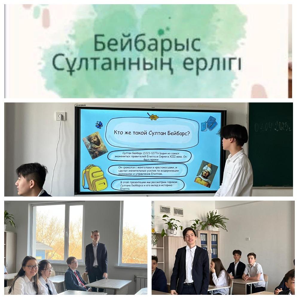 Іс-шара барысында оқушыларға Сұлтан Бейбарыстың өмір жолы жайында тұсаукесер дайындалып, бейнебаян мен 1989 жылы жарық көрген "Сұлтан Бейбарыс" көркем фильмінен үзінді көрсетілді. Сабақта оқушылар постер қорғады.