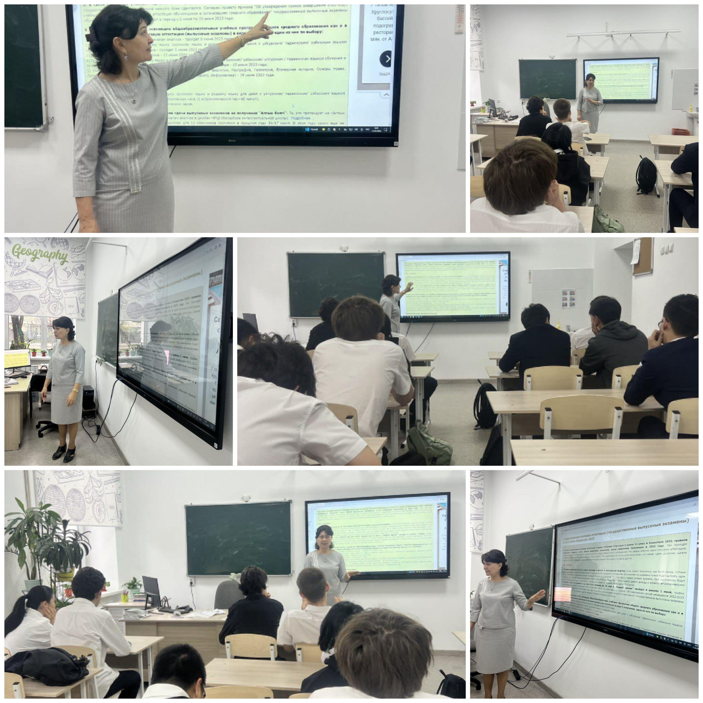 11 апреля 2023 года в 11 "Б" классе КГУ "Лицей №166" прошел классный час на тему "Подготовка к ЕНТ". Цель классного часа: напомнить учащимся о необходимости сдачи ЕНТ. Необходимо сделать упор на учебу. Нужно готовиться к экзаменам и ЕНТ, не стоит надеяться на помощь извне, посещайте дополнительные курсы и консультации.