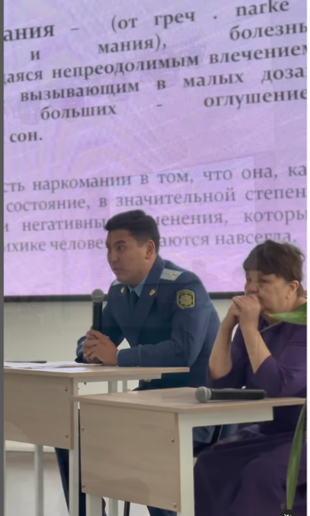 Врач-нарколог, психиатр Кенесбекова Салия Кенесбековна объяснила ученикам в доступной форме с точки зрения медицины о последствиях употребления различных психоактивных веществ на здоровье, акцентировала внимание на том, что здоровье является одной из главных жизненных ценностей и что сохранение и укрепление здоровья — это, в первую очередь, задача самого человека.