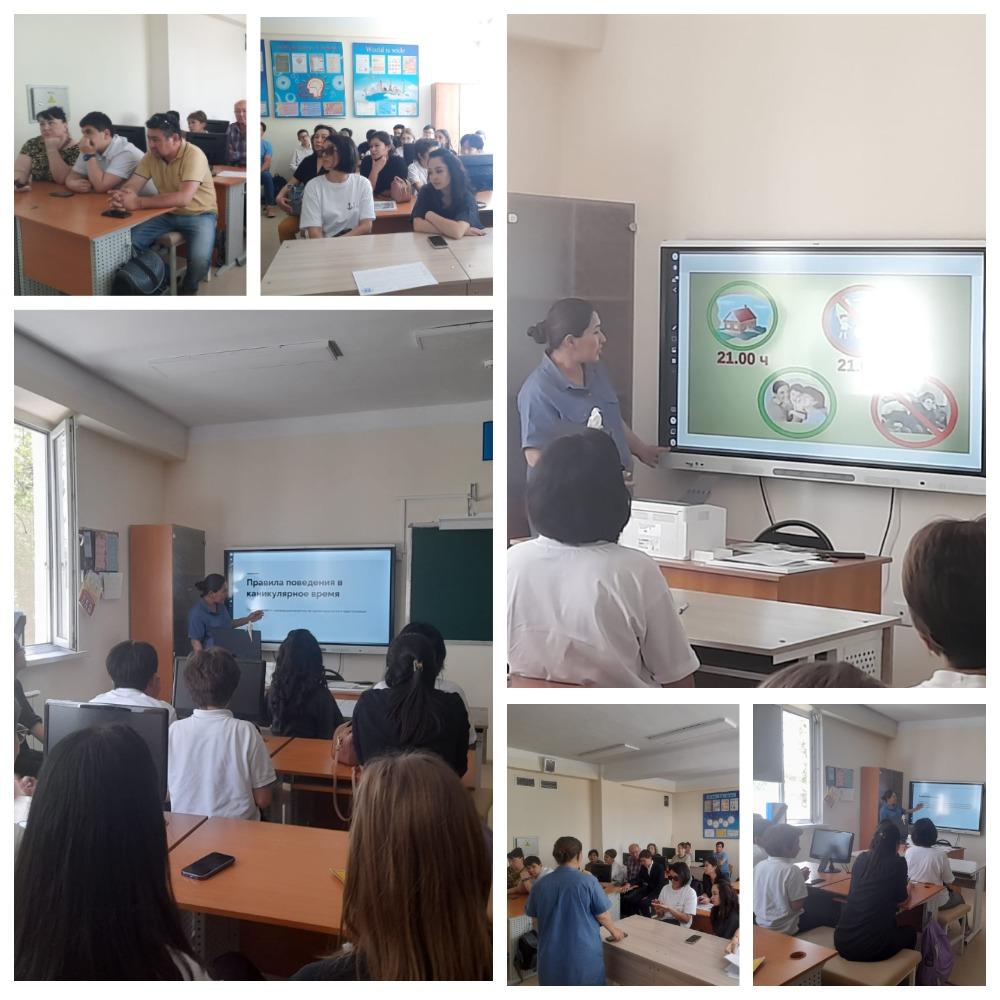 В 7 «А» классе КГУ «Лицей № 166» прошел классный час с участием родителей, на котором были озвучены следующие вопросы: школьная форма на следующий учебный год, обязательное условие учебного процесса; техника безопасности во время летних каникул. Правила поведения на воде; итоги 4 четверти и учебного года, посещаемость, опоздания; организационные вопросы, вручение похвальных и благодарственных листов.