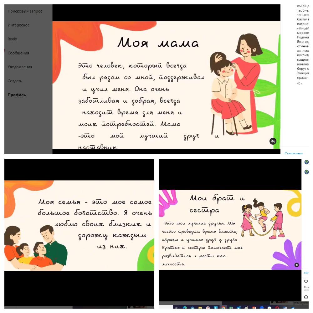 Учащиеся 6 «Г» класса КГУ «Лицей 166» подготовили к этому празднику видеоролики о своих семьях.