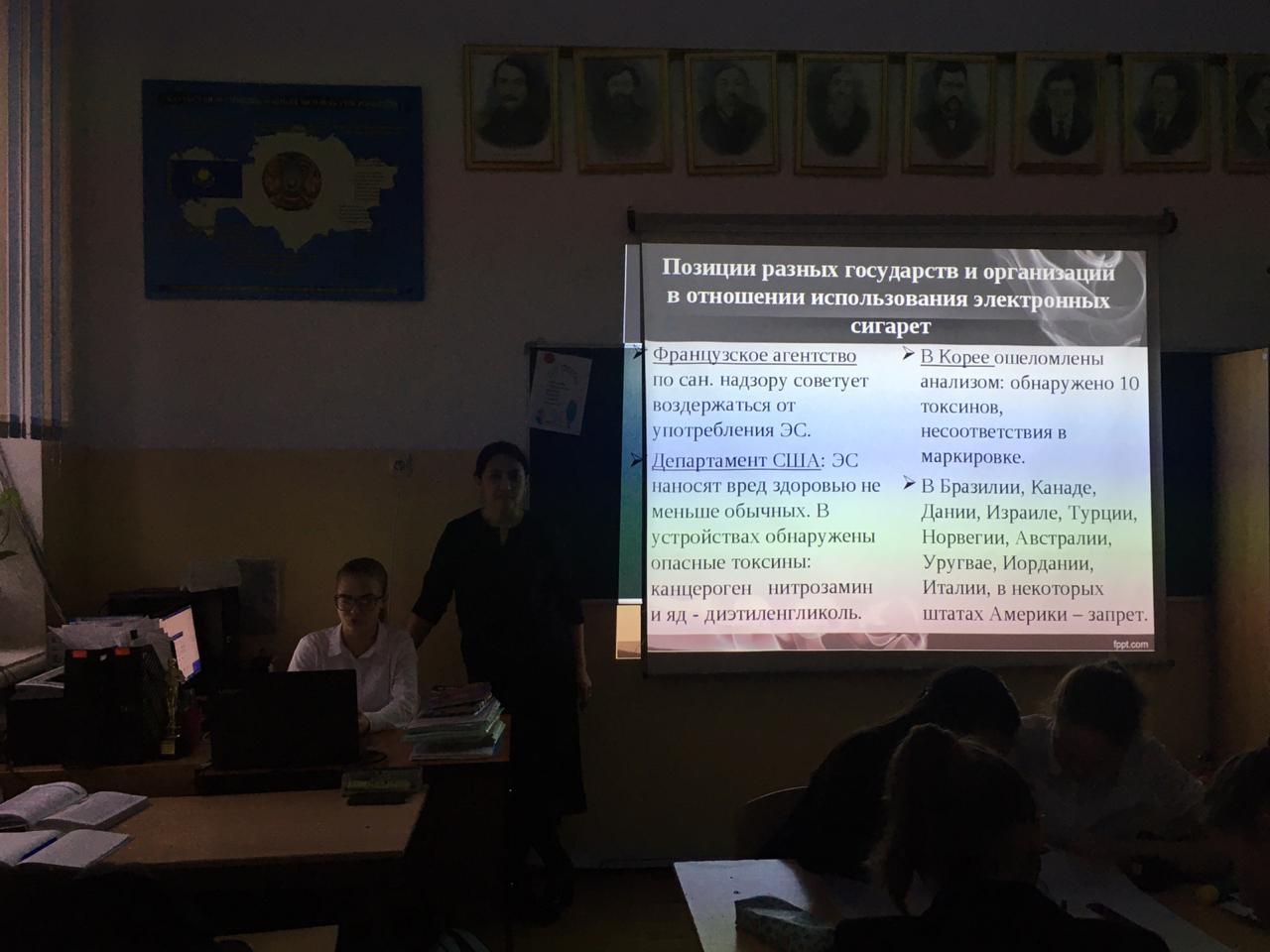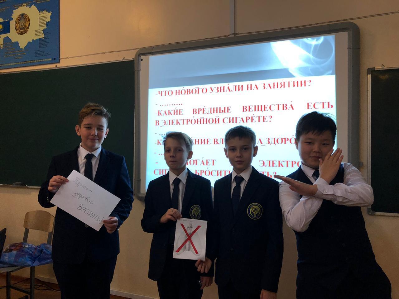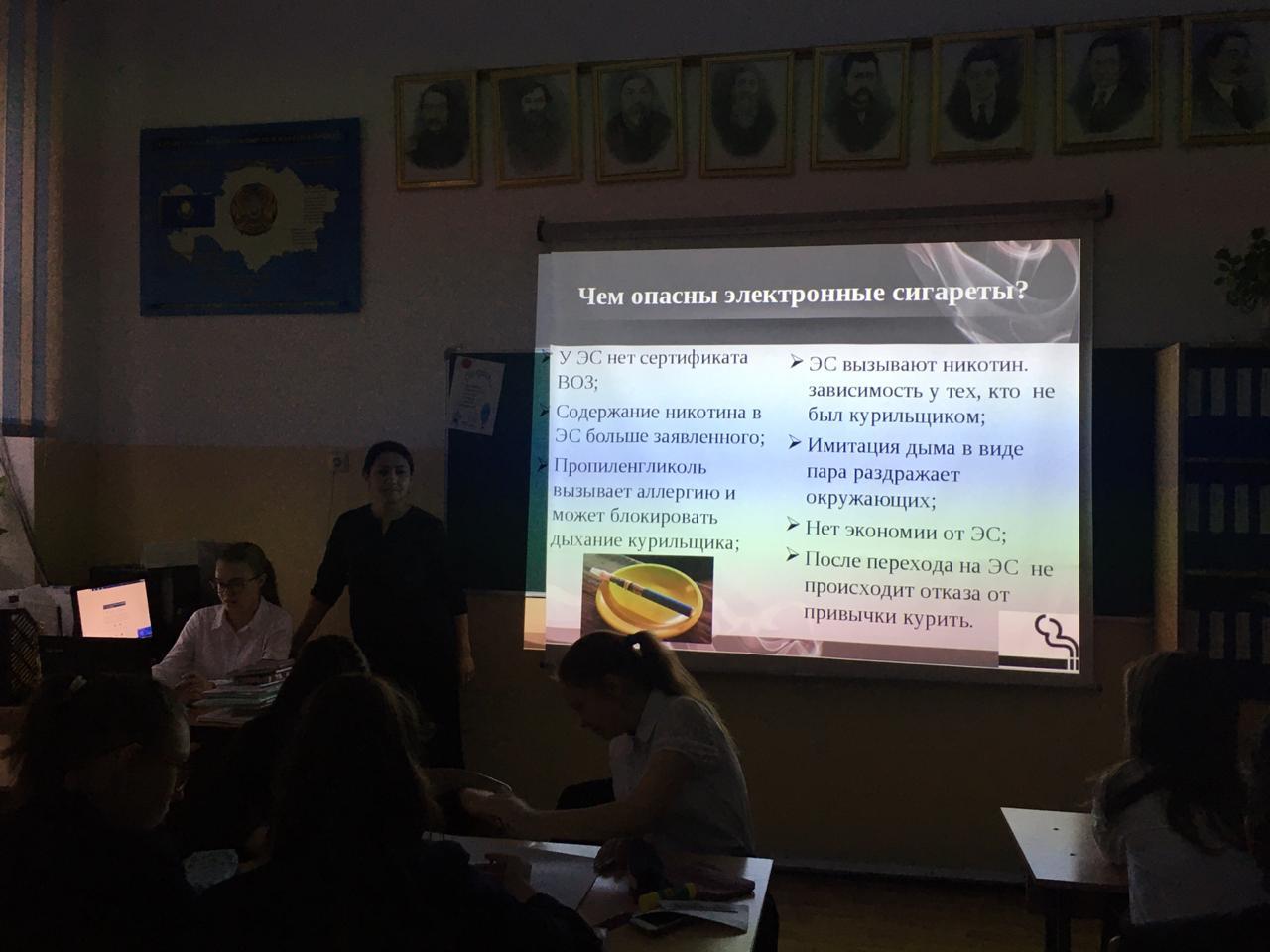 05 ноября 2019 года в КГУ «Лицей № 166» прошел классные часы в 5-9 классах на тему «Курение. Электронные сигареты».