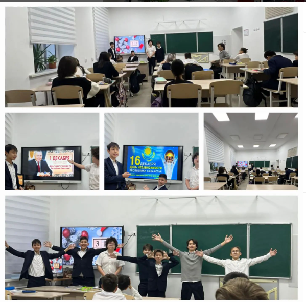 Самый любимый месяц зимы у взрослых и детей - декабрь. А Казахстанский декабрь особенно богат на праздники : "День Первого президента", "День Независимости Казахстана" и , конечно, Новый Год! В декабре нужно очень постараться и отпраздновать и 2-ю четверть закончить достойно! Ребята, ученики 7 "Б" класса КГУ "Лицей № 166" очень стараются: сами готовят классный час с чувством гордости и патриотизма, отрабатывают уроки!