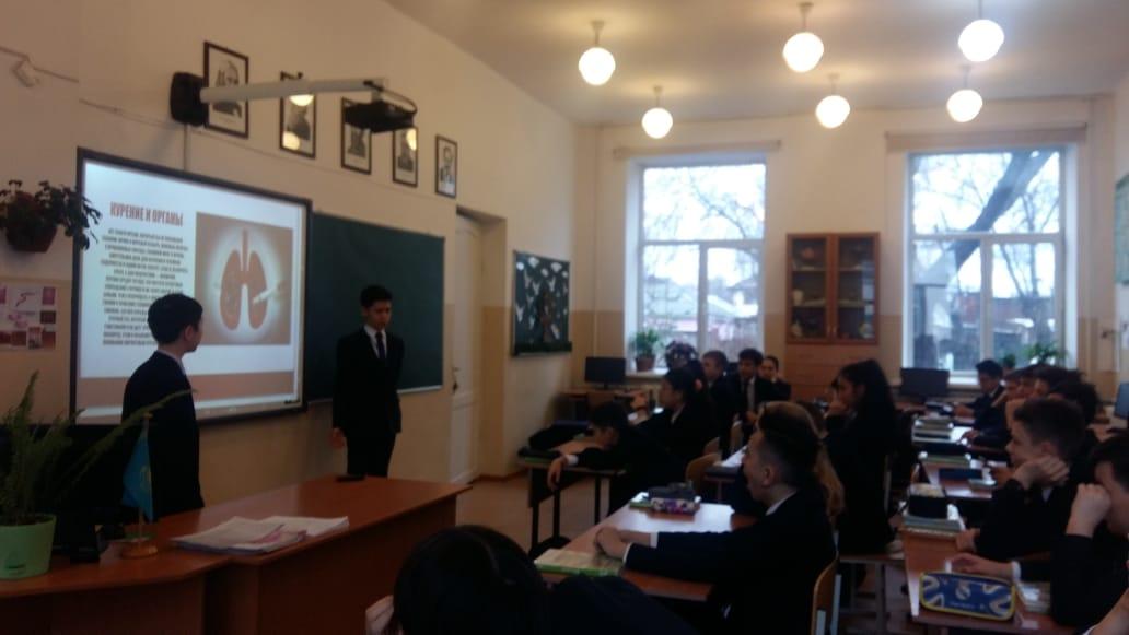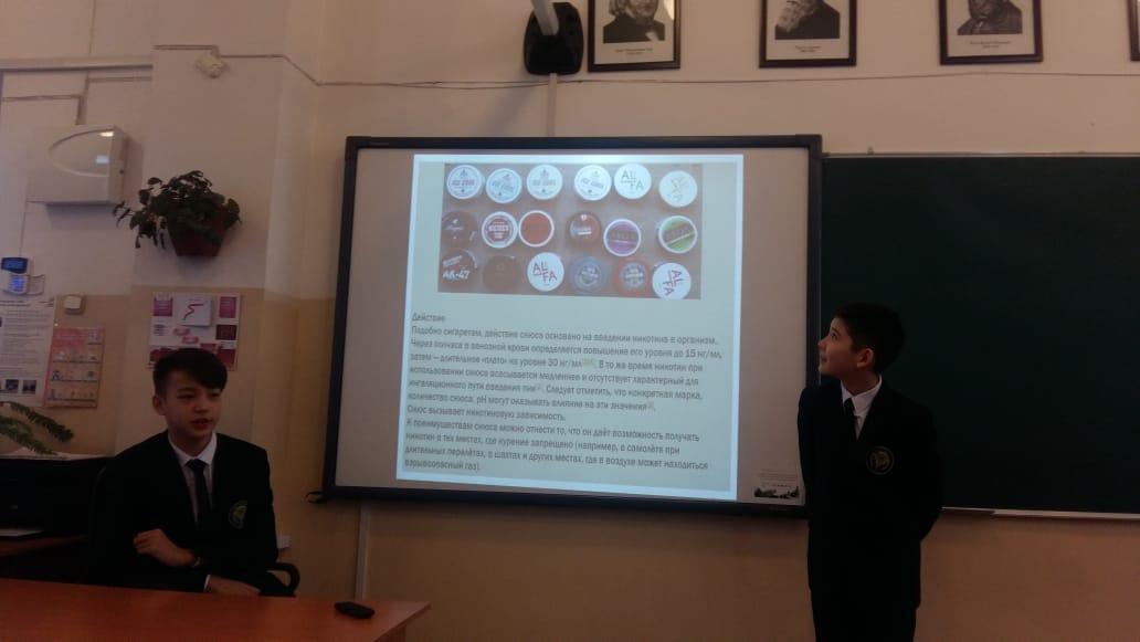 10 марта 2020 года в КГУ «Лицей № 166» в 7 «Б» классе преподавателем биологии Пак Инессой Викторовной был проведен урок на тему: "СНЮС – это яд».
