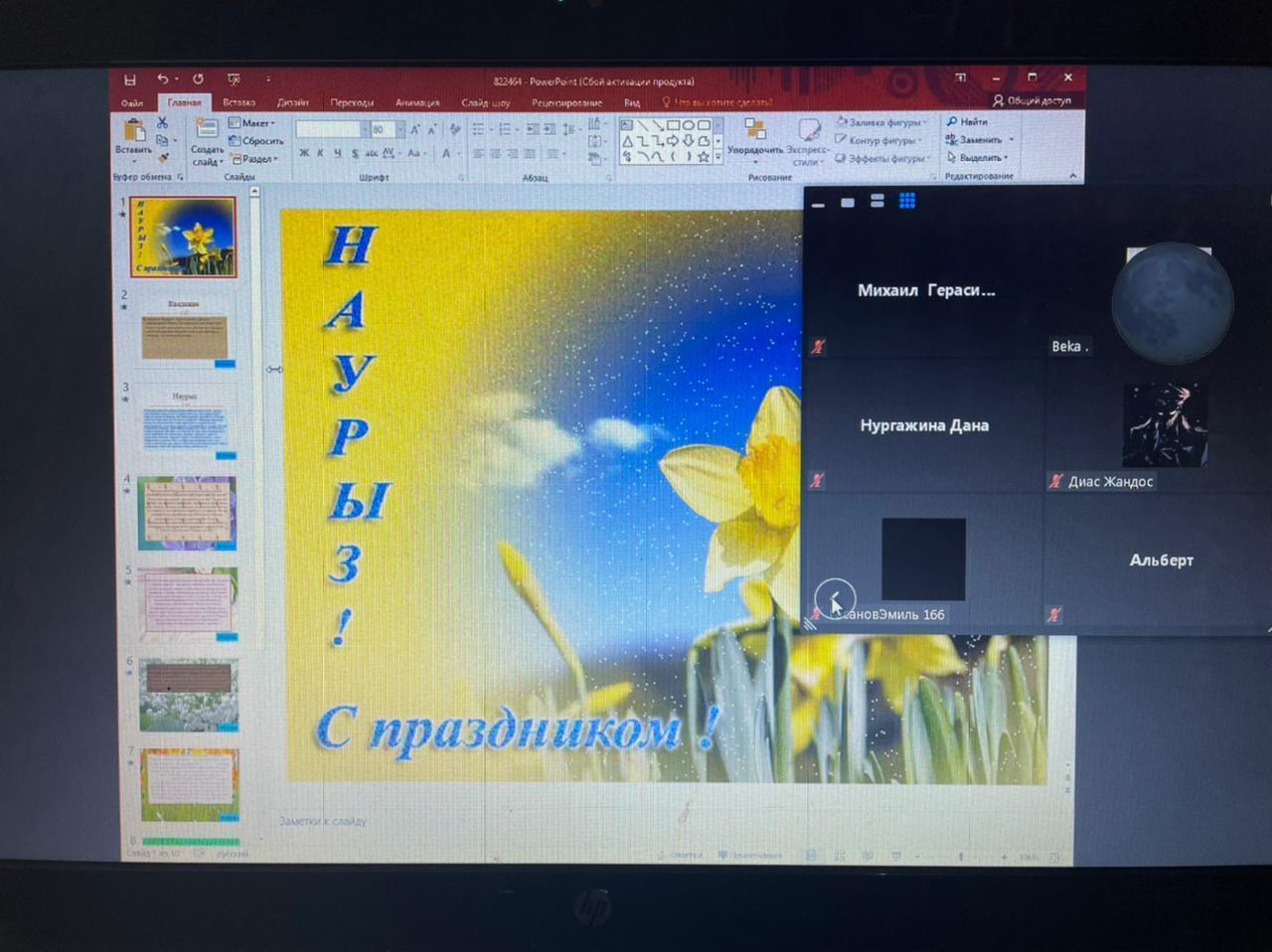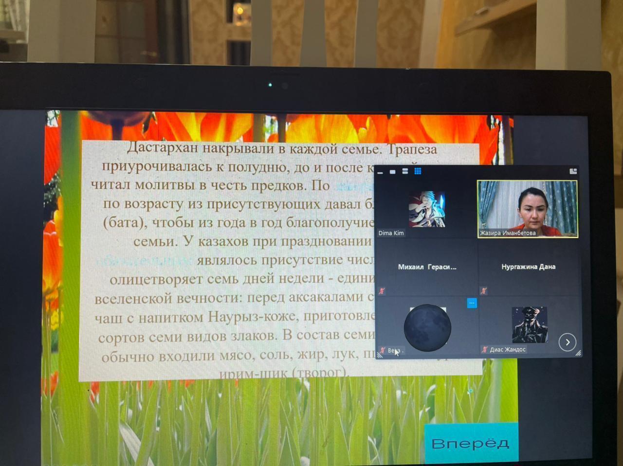 В целях формирования системы ценностей в рамках направлении национального воспитания - «Ұлыстың ұлы күні» учитель казахского языка и литературы КГУ «Лицей № 166» Иманбетова Жазира Галымжановна провела в 11 «А» классе исторический час «Праздник Наурыз: история и смысл казахского Нового года».