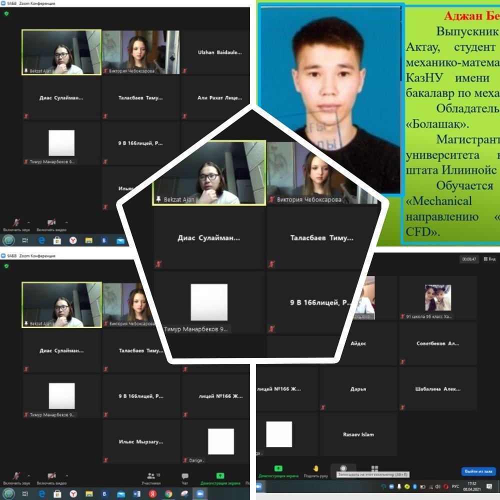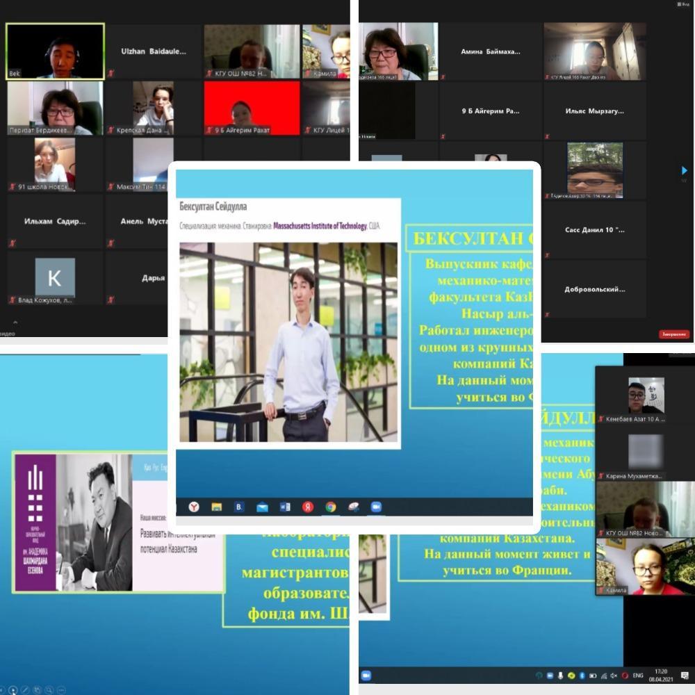 Для достижения высоких целей, поставленных в жизни, необходимо брать пример с людей, которые имеют большой жизненный опыт и веру в свои силы, не сбиваются с намеченного пути и стремятся только вперед, а главное, приносят большую пользу своей Родине. С этой целью и в рамках празднования 30-летия Независимости Республики Казахстан 8 апреля 2021 года в КГУ "Лицей № 166" под руководством руководителя отдела образования Алатауского района Акмурзаевой Карлыгаш Медербековны состоялась встреча с учеными Казахстана на тему "Будущее рождается сегодня".