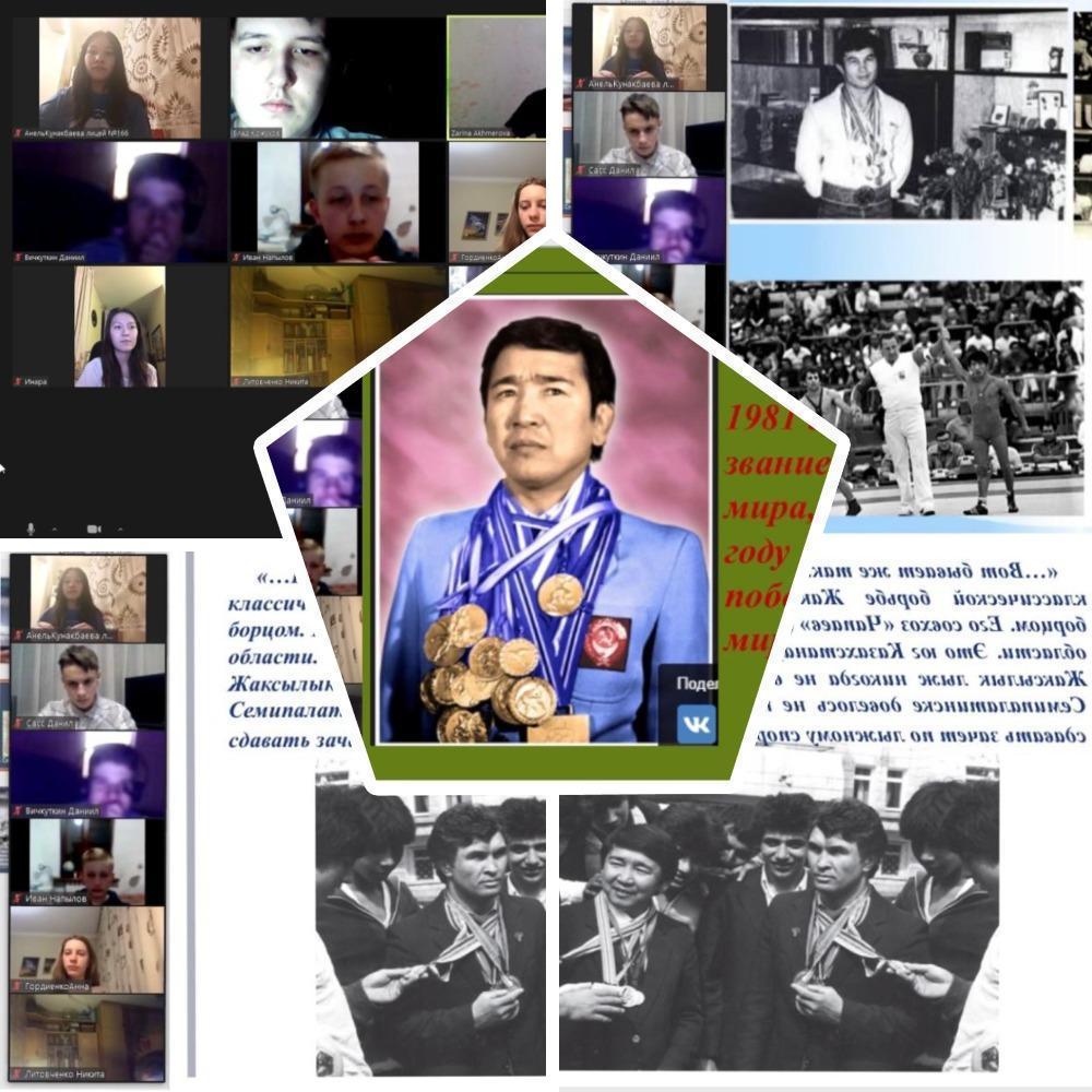 В КГУ «Лицей № 166» для учащихся 5-11 классов прошел урок памяти, посвященный двукратному чемпиону СССР, чемпиону мира, первому казаху, олимпийскому чемпиону по греко-римской борьбе Жаксылыку Ушкемпирову «Победители Олимпиады – наша гордость!».