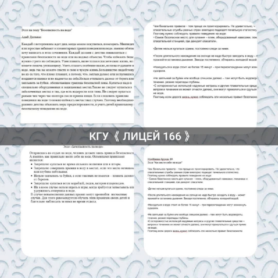 В целях познакомить с причинами несчастных случаев, воспитывать бережное отношение к жизни и здоровью в КГУ "Лицей № 166" организовали среди 8-х классников конкурс эссе, под руководством Абильваповой В.Т. Все дети активно участвовали, были заинтресованными.