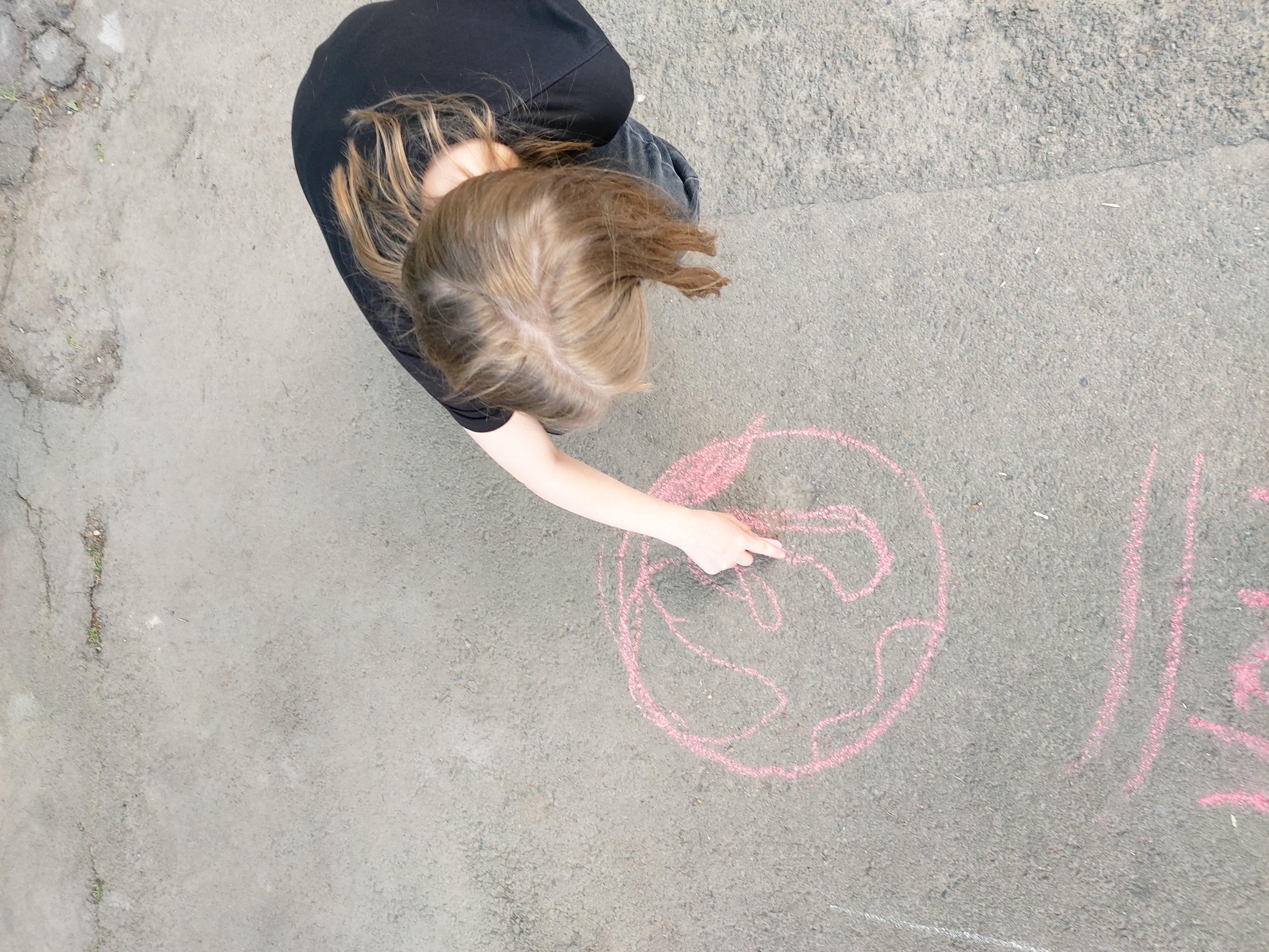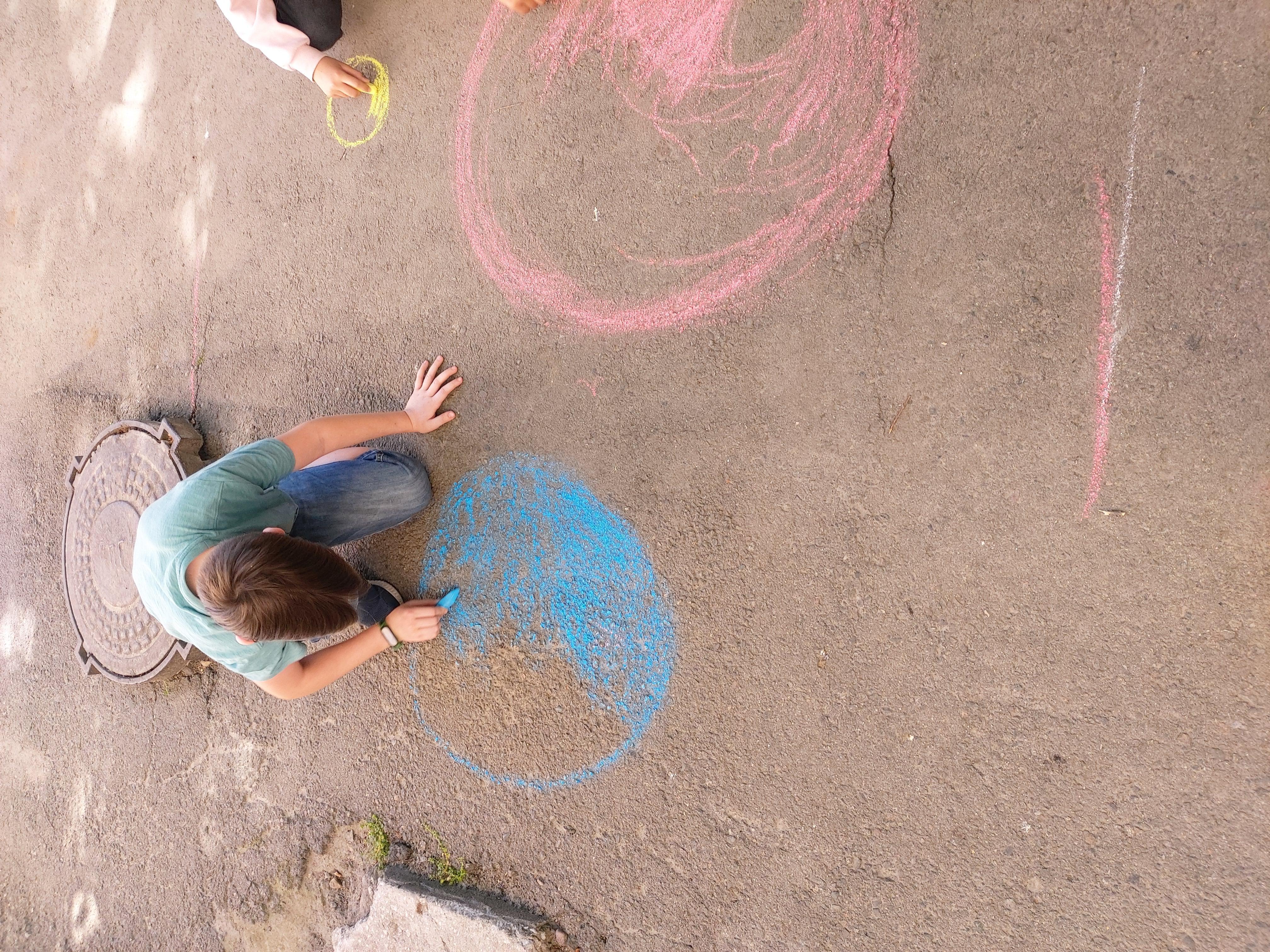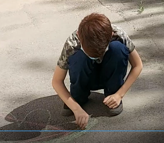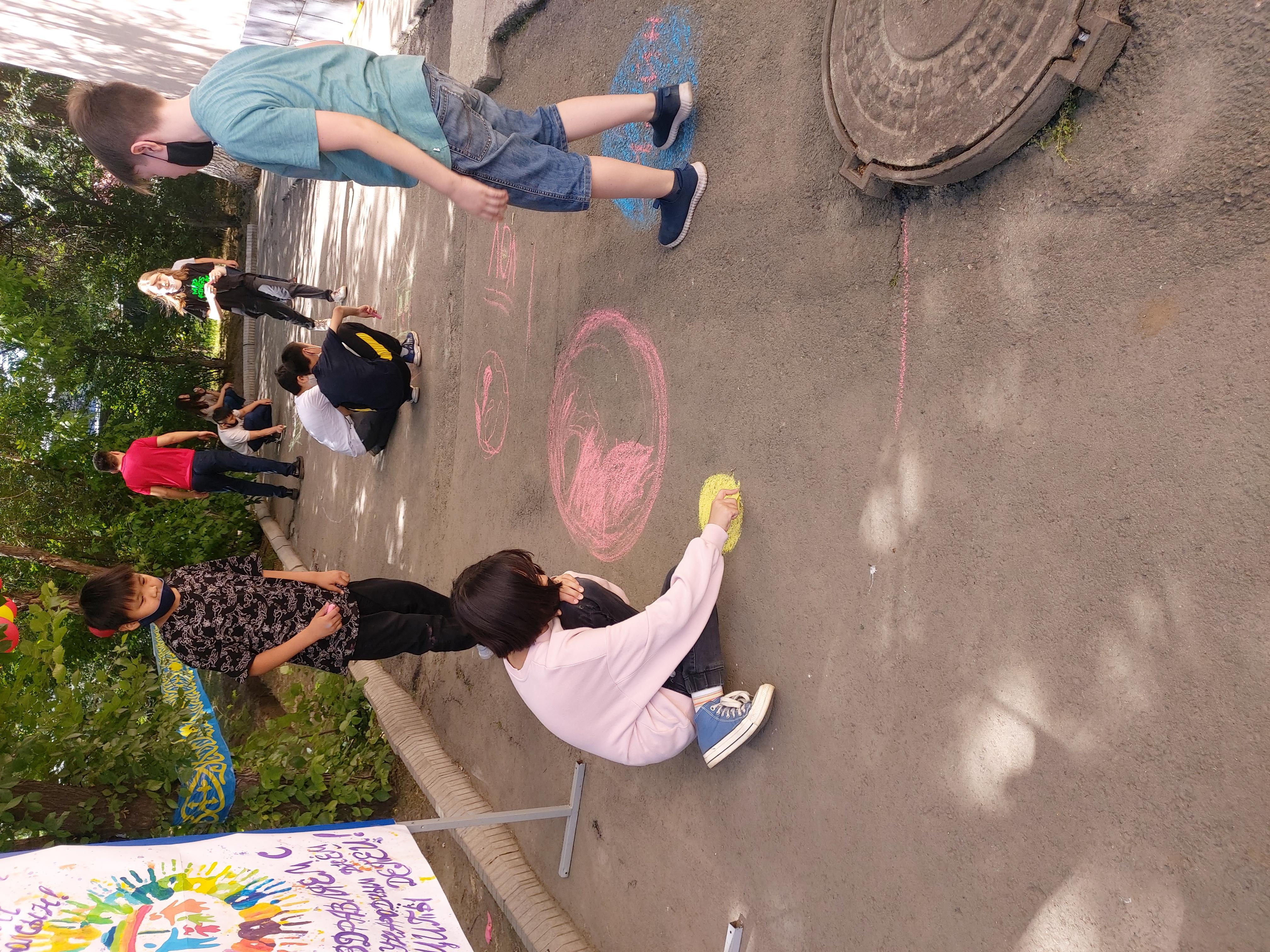 Детям нужно было нарисовать цветными мелками рисунок на асфальте школьной площадки. Каждый из ребят придумал тему своего рисунка. Они старались отразить в нем окружающий мир. Рисунки получились интересными, яркими.