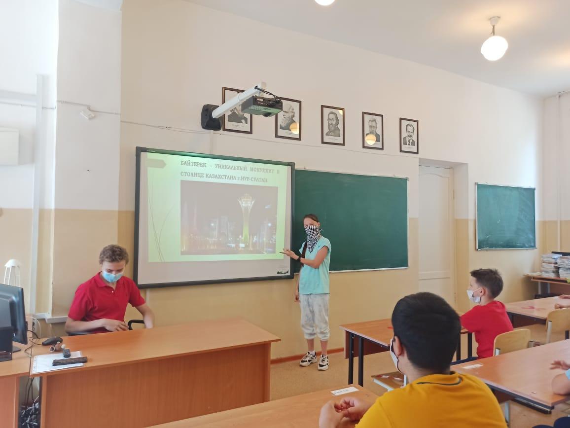 В рамках тематического блока «Жазғы саязат» в КГУ «Лицей № 166» с 7 по 13 июня 2021 года классный руководитель 6 «Б» класса Пак И.В. провела урок-экскурсии «Лучший штурман». На мероприятии дети рассказывали о достопримечательностях родного края. Ученики вместе подготовили экскурсию по Казахстану и делятся своими впечатлениями о достопримечательностях родного края.