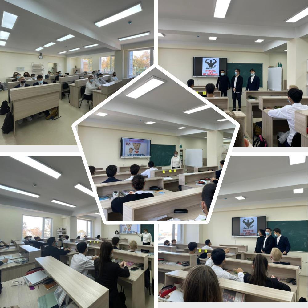 26 октября 2021 года классный руководитель 11 «Б» классе КГУ «Лицей № 166» Соловьева Т.А. провела информационно-разъяснительную беседу на тему «Курить уже не модно!». Цель: воспитание у учащихся ответственности за свое здоровье, устойчивого негативного отношения к курению. Ученики узнали о страшных последствиях курения, о том, что курящий человек приносит вред не только себе, но и окружающим. Затем привела доводы, почему человек должен отказаться от курения.