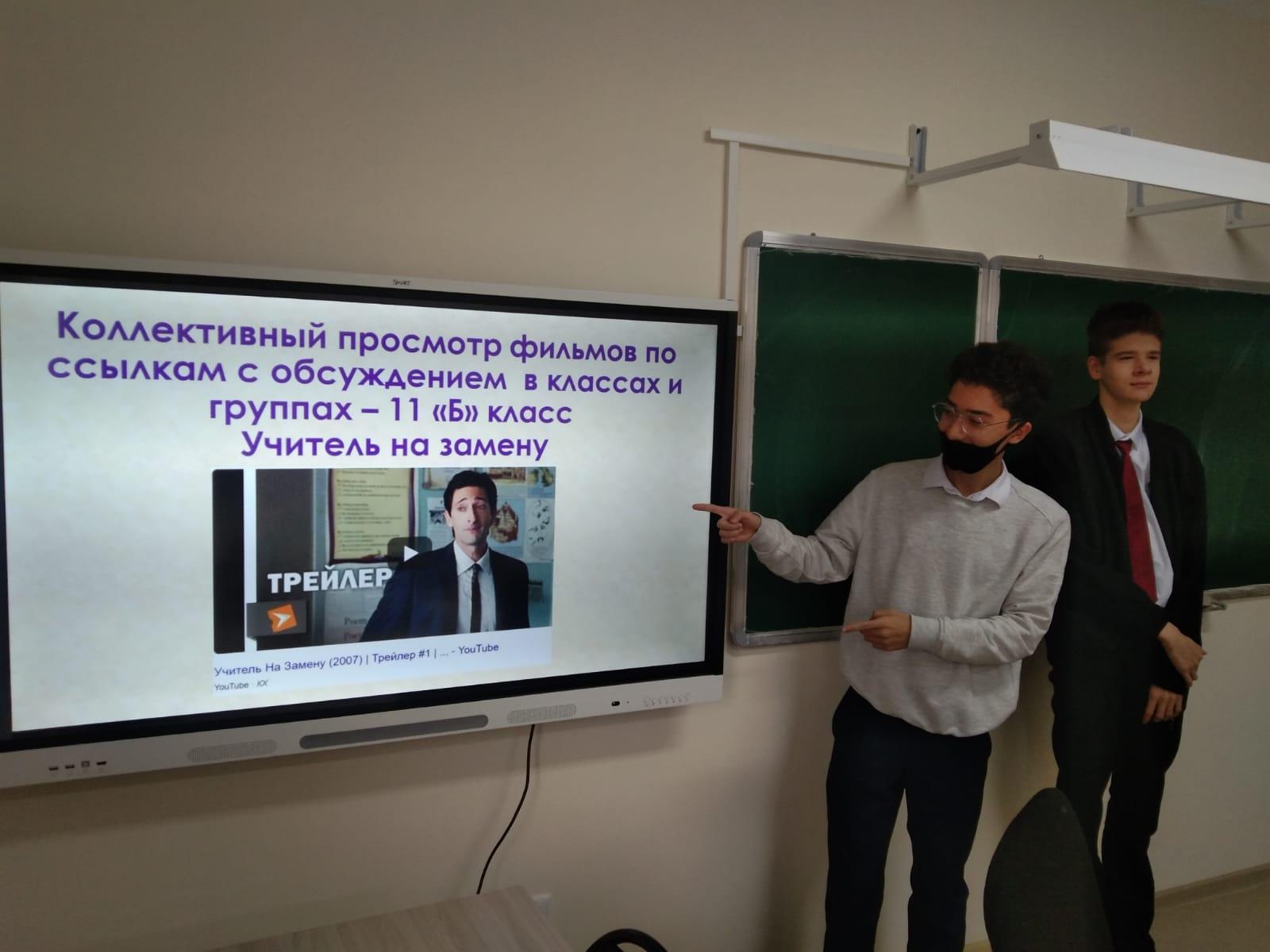 В соответствии с планом мероприятий осенних каникул а 11 «А» классе КГУ «Лицей № 166» прошел коллективный просмотр фильма «Учитель на замену»,и обсуждение в классе.