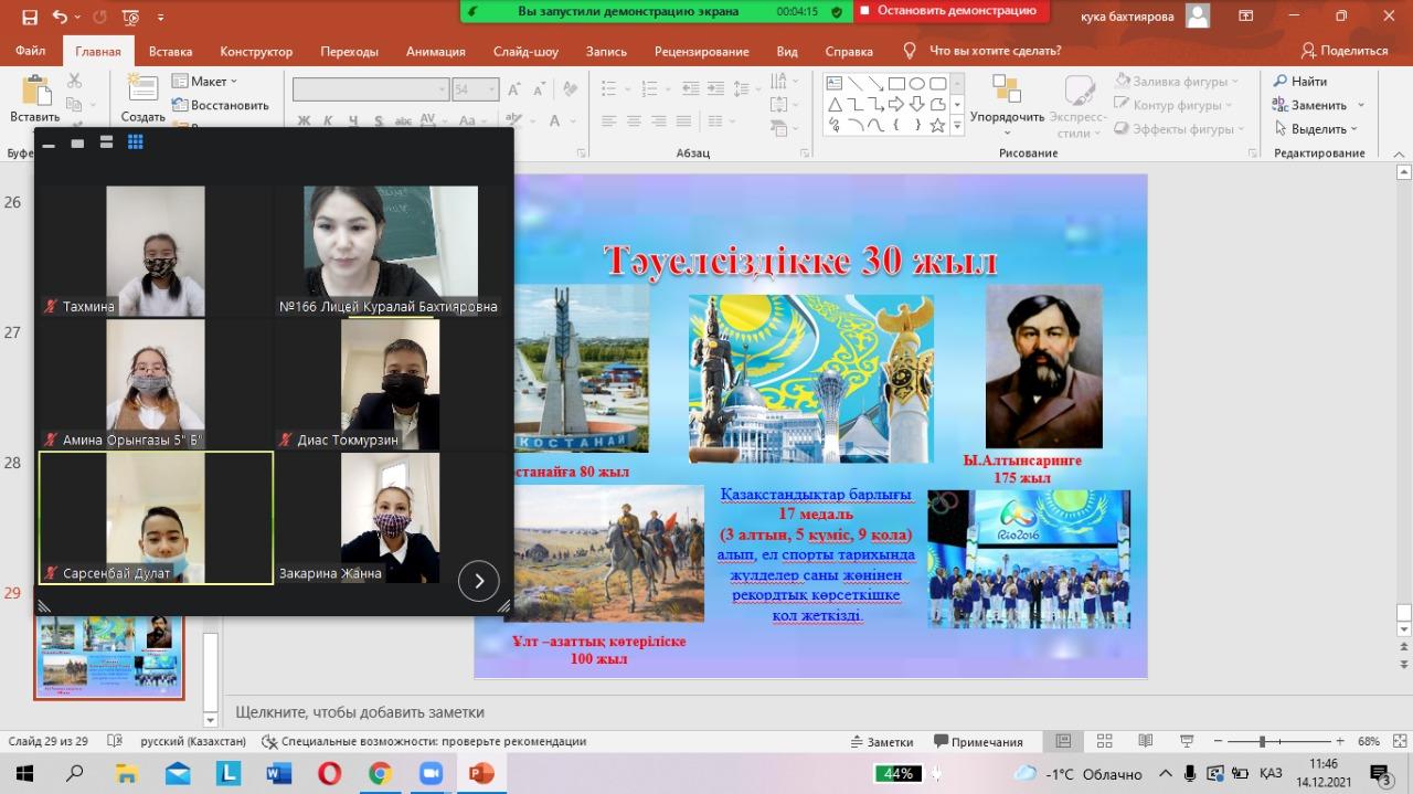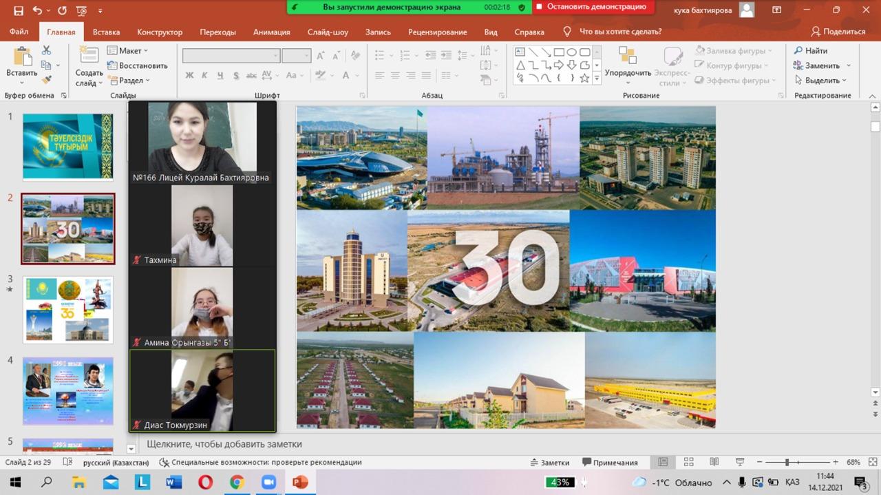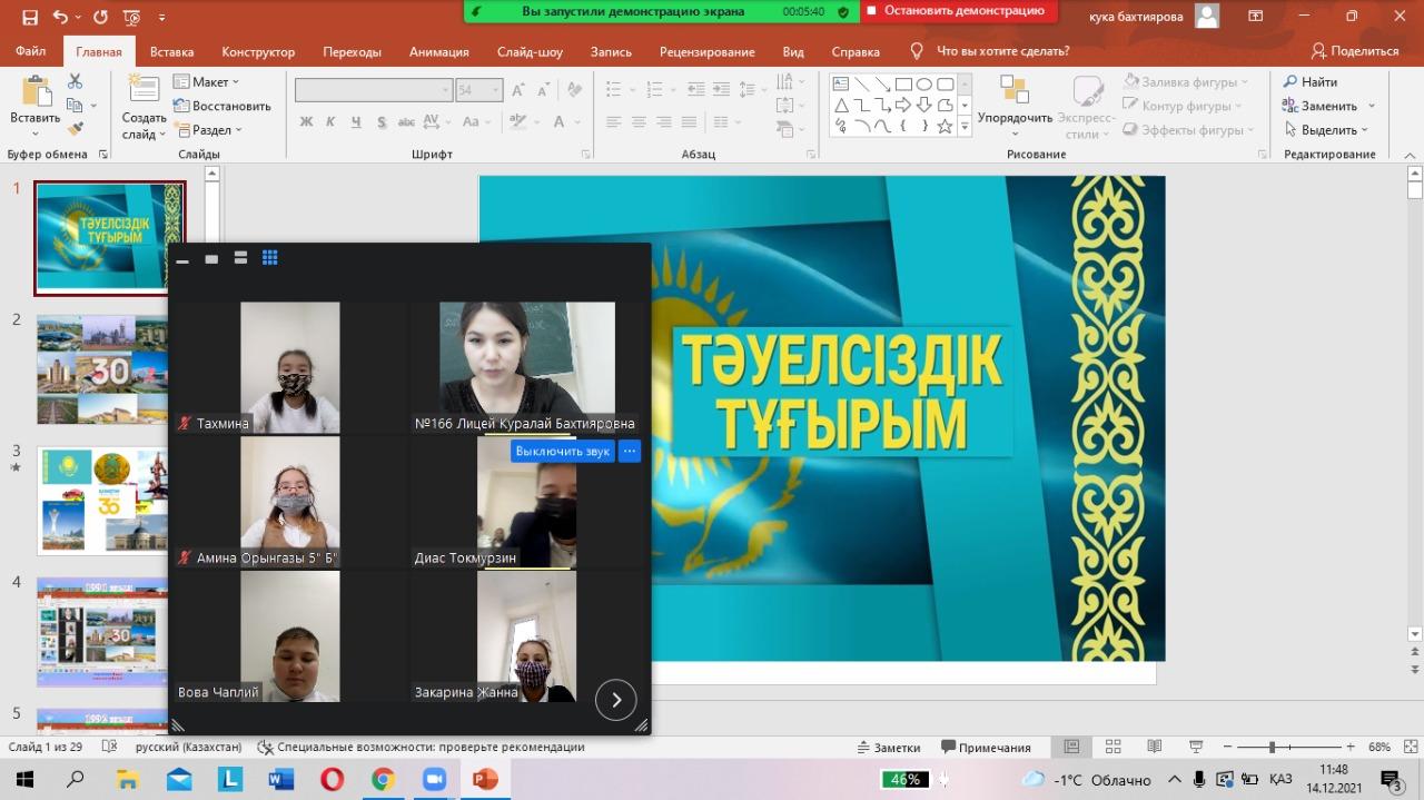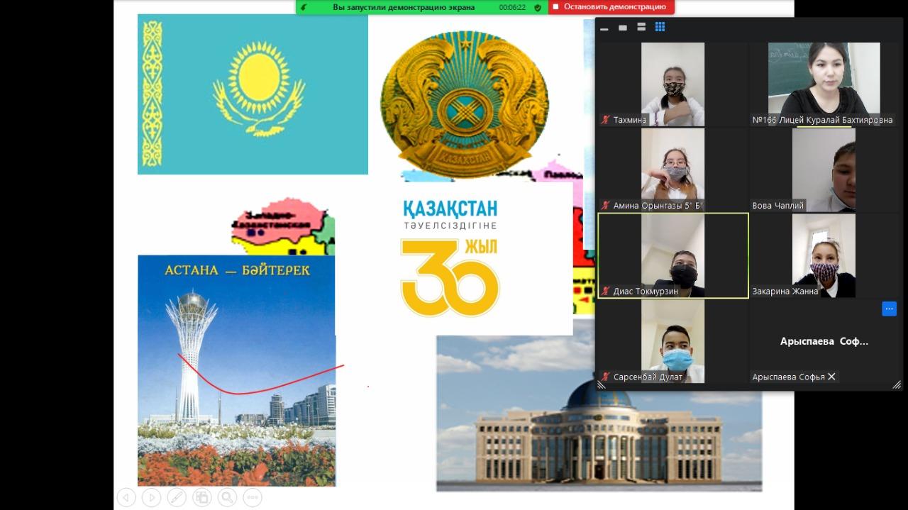 В рамках празднования 30-летие Независимости Республики Казахстан проведен классный час в 6 «Б» классе КГУ «Лицей № 166».