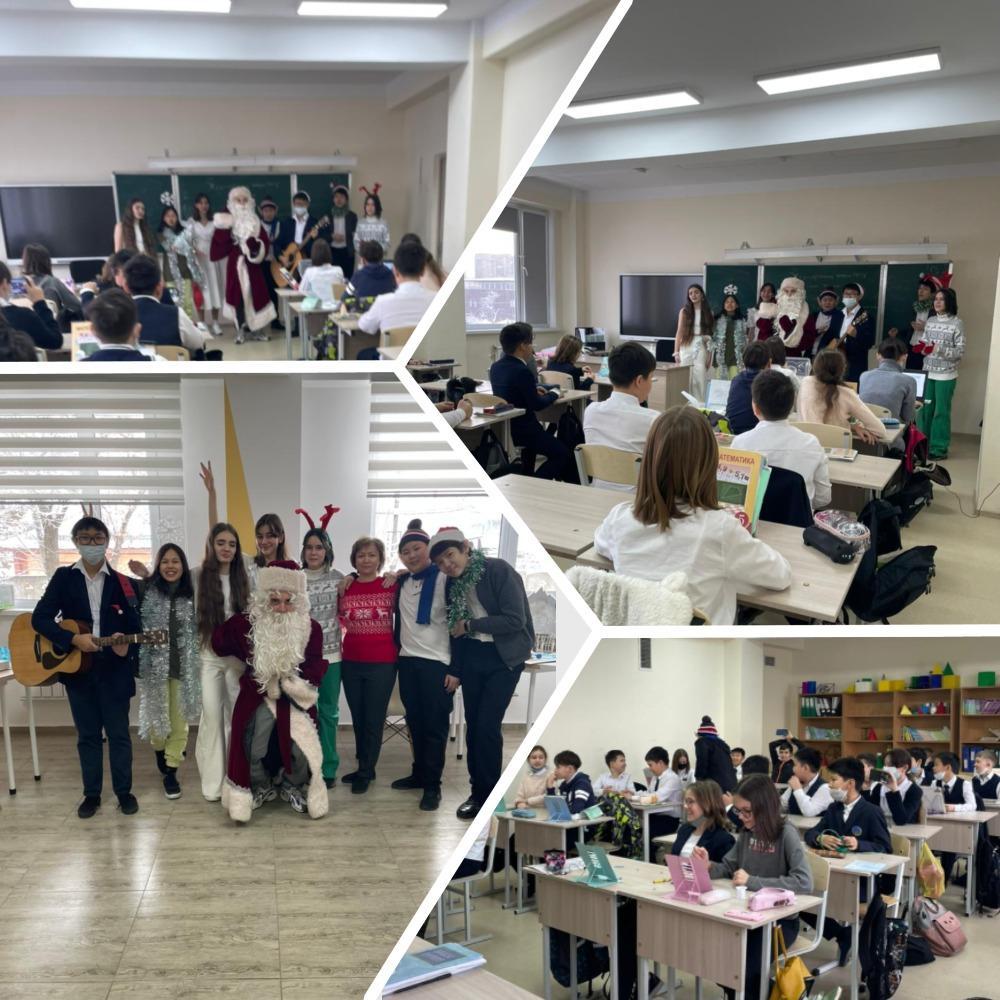 28 декабря 2021 года 8 «Б» класс КГУ «Лицей № 166» - ответственный класс за организацию и проведение новогодних праздников - они же: сказочные герои Дед Мороз, снежный ангел, эльфы, олени, ёлка поздравили всех ребят лицея с наступающим Новым годом, и пожелали успехов, реализации задуманных планов, крепкого здоровья, хорошего настроения, мира и благополучия!!