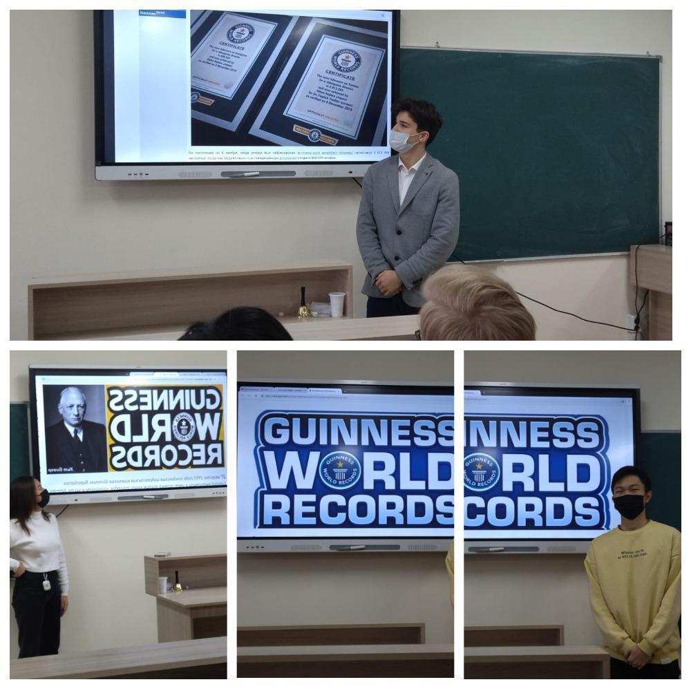 В 11 «Б» классе КГУ «Лицей № 166» прошел познавательный час "Книга рекордов Гиннеса", целью которого были расширить знания детей о «Книге Гиннесса», развивать интеллектуально-познавательную деятельность.