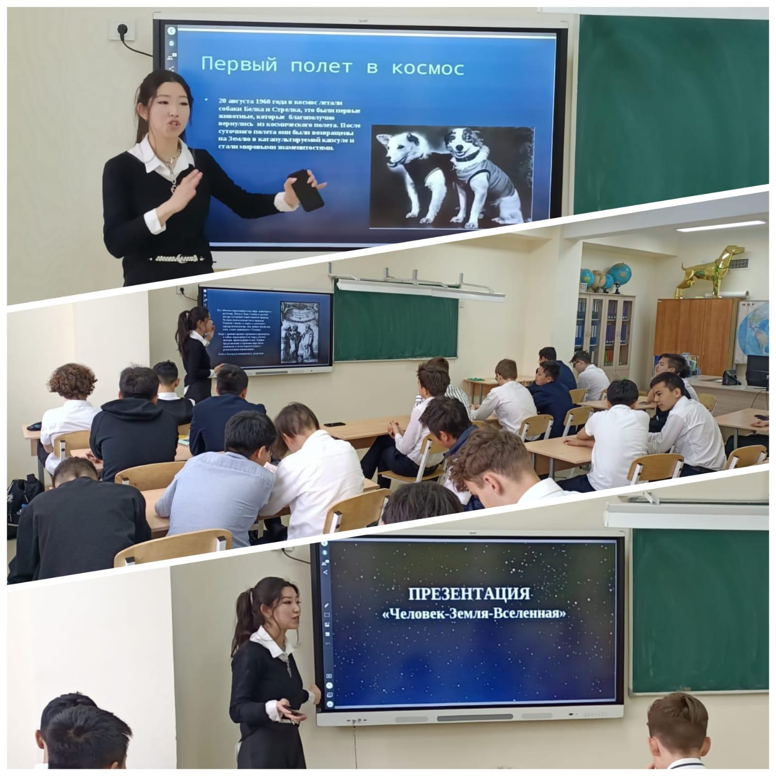 В 7-х классах КГУ «Лицей № 166» был проведён тематический классный час на тему «Человек. Земля. Вселенная»