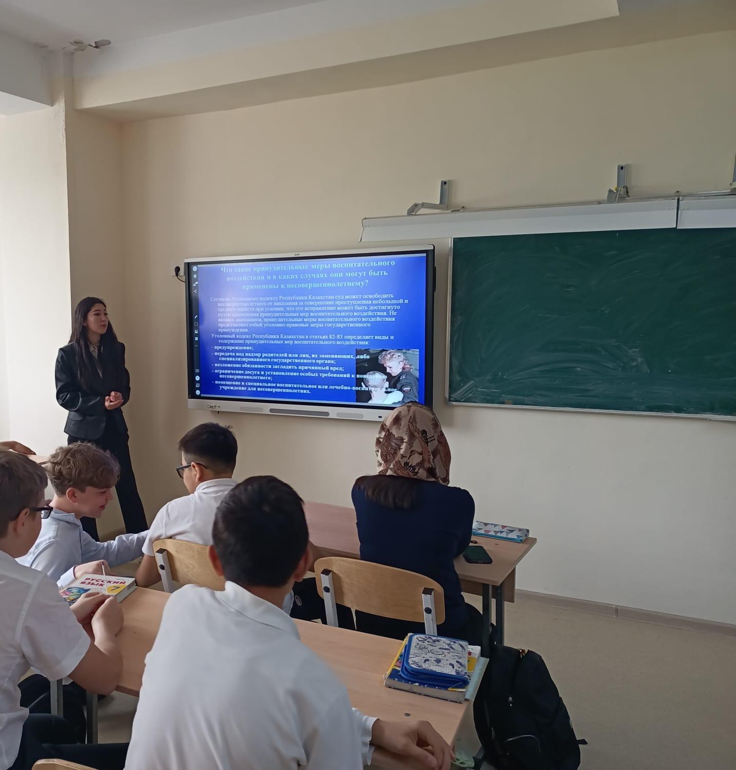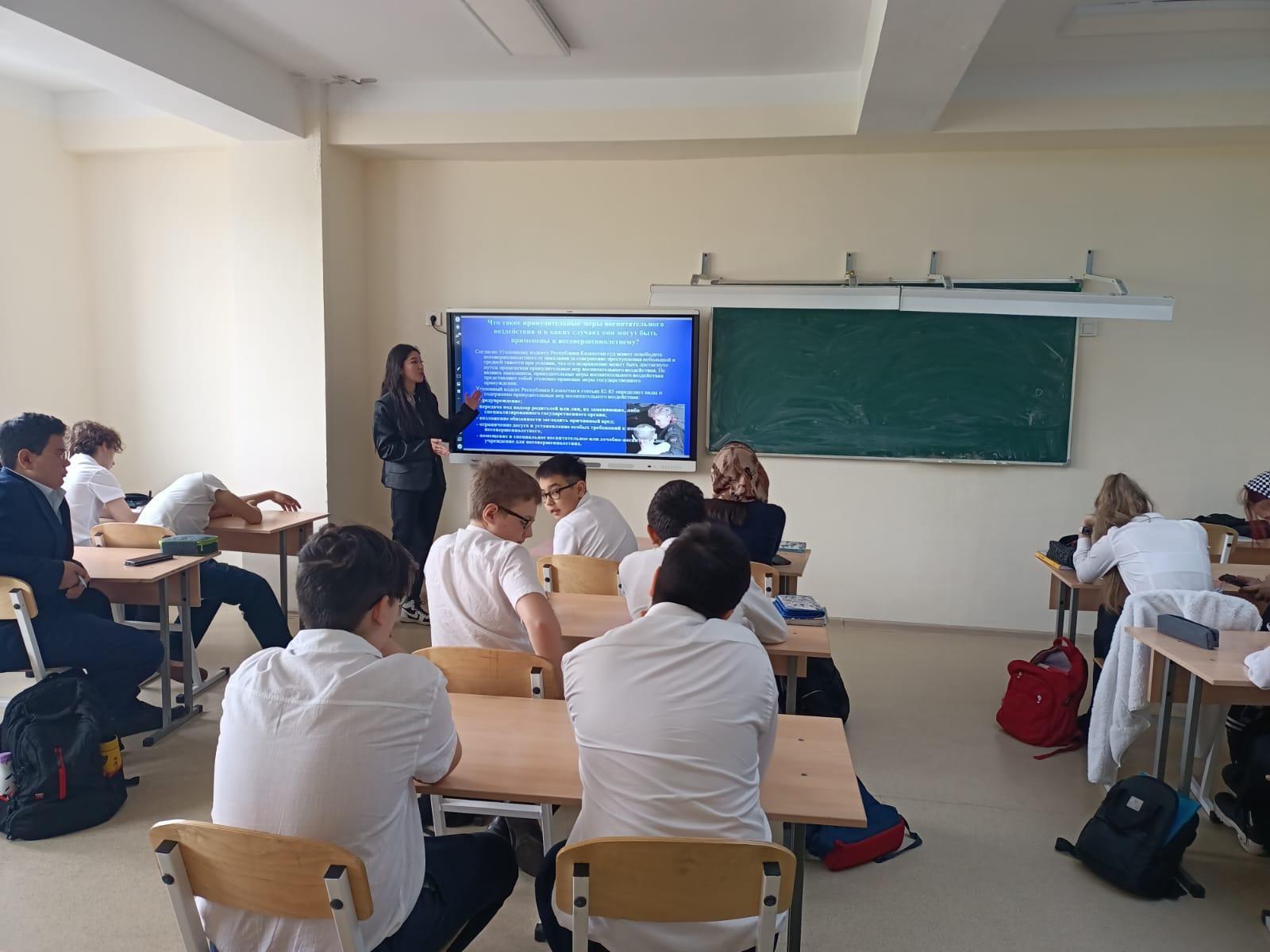 В 7 «Б» классе КГУ "Лицей № 166" был проведён образовательный и воспитательный классный час на тему «Уголовная ответственность несовершеннолетних в РК»