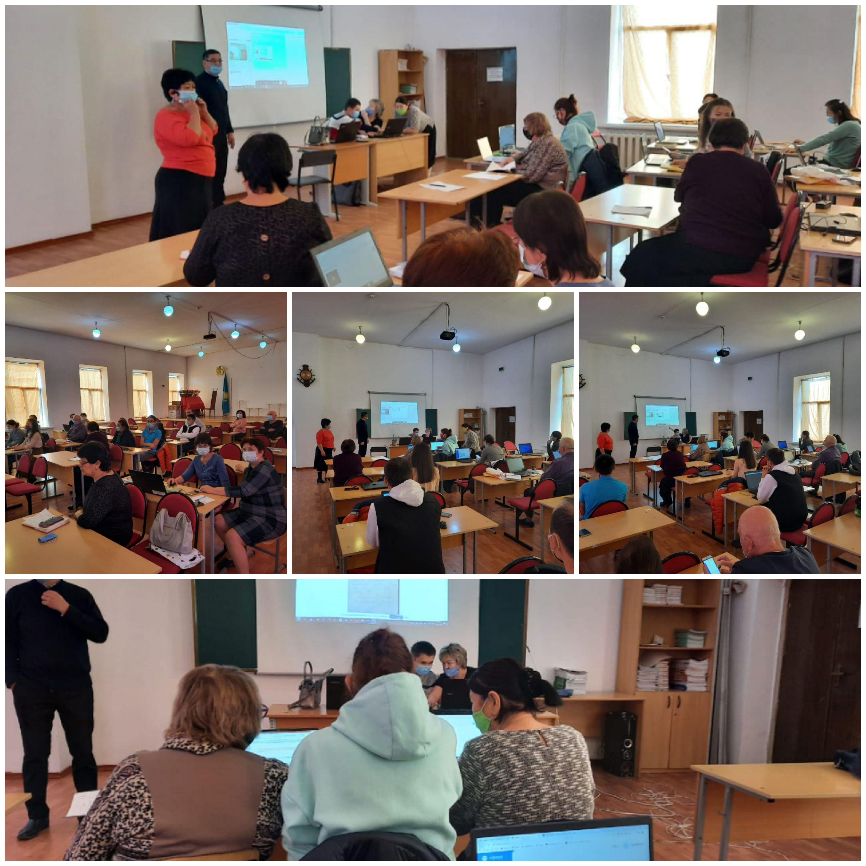 Заместитель директора по научной-методической работе Егизбаева У.Е. наглядно продемонстрировала алгоритм действий как учителя, так и ученика во время работы на данной платформе. Были рассмотрены на конкретных примерах пошаговые действия по созданию урока, по отправке приглашений на урок каждому ученику, по организации синхронного урока в формате конференции. Учительский состав овладевал навыками использования демонстрации экрана, навыками просмотров видеоссылок на данный урок.