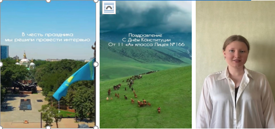 В целях формирования у школьников уважения к Конституции Республики Казахстан, развития правовой культуры, воспитания гражданственности и патриотизма учащиеся 5–11 классов КГУ «Лицей № 166» приняли активное участие в республиканском челлендже «Конституция в моей жизни», посвящённом 30-летию Конституции Республики Казахстан.