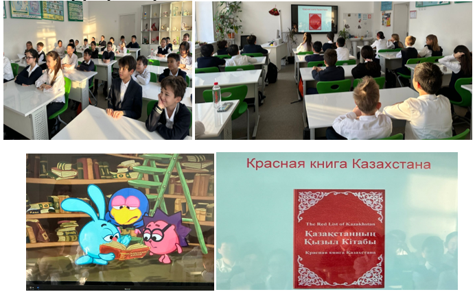 В начале занятия ученики были ознакомлены с понятием «Красная книга», её назначением и значением для охраны природы. Ребята узнали, почему исчезают животные и растения, какие факторы негативно влияют на экологию, а также какие виды, занесённые в Красную книгу Казахстана, находятся под особой защитой. Затем учащиеся выполняли небольшие творческие задания и делали выводы о необходимости охраны природы.