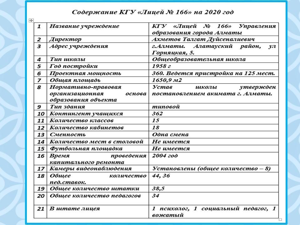 02 ноябрь 2020 0 1 2 3 4 5 Содержание КГУ "Лицей № 166" на 2020 г Осы беттің QR-коды:QR-код этой страницы: