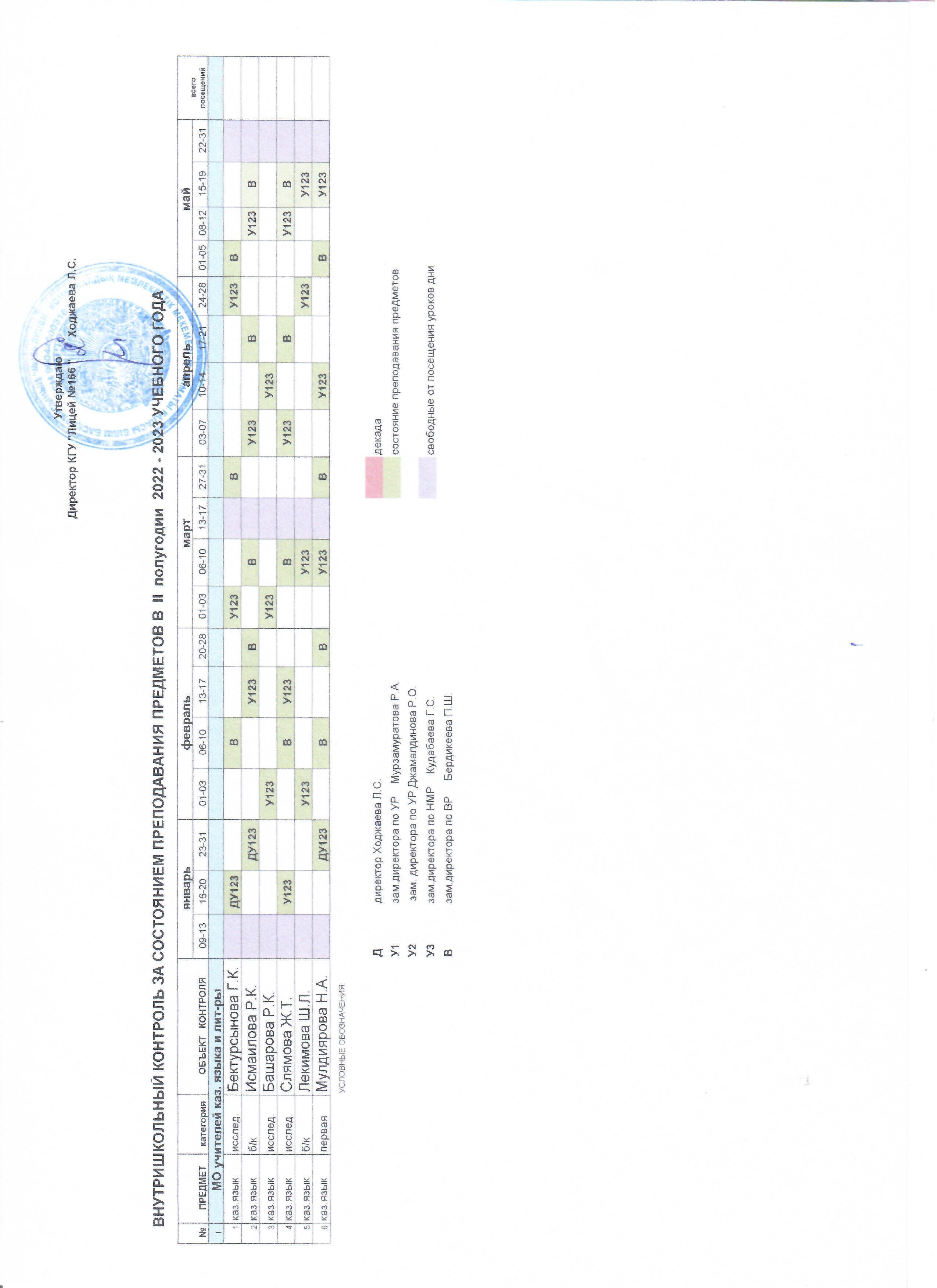 Внутришкольный контроль за состоянием преподавания предметов в ІІ полугодии 2022-2023 учебного года