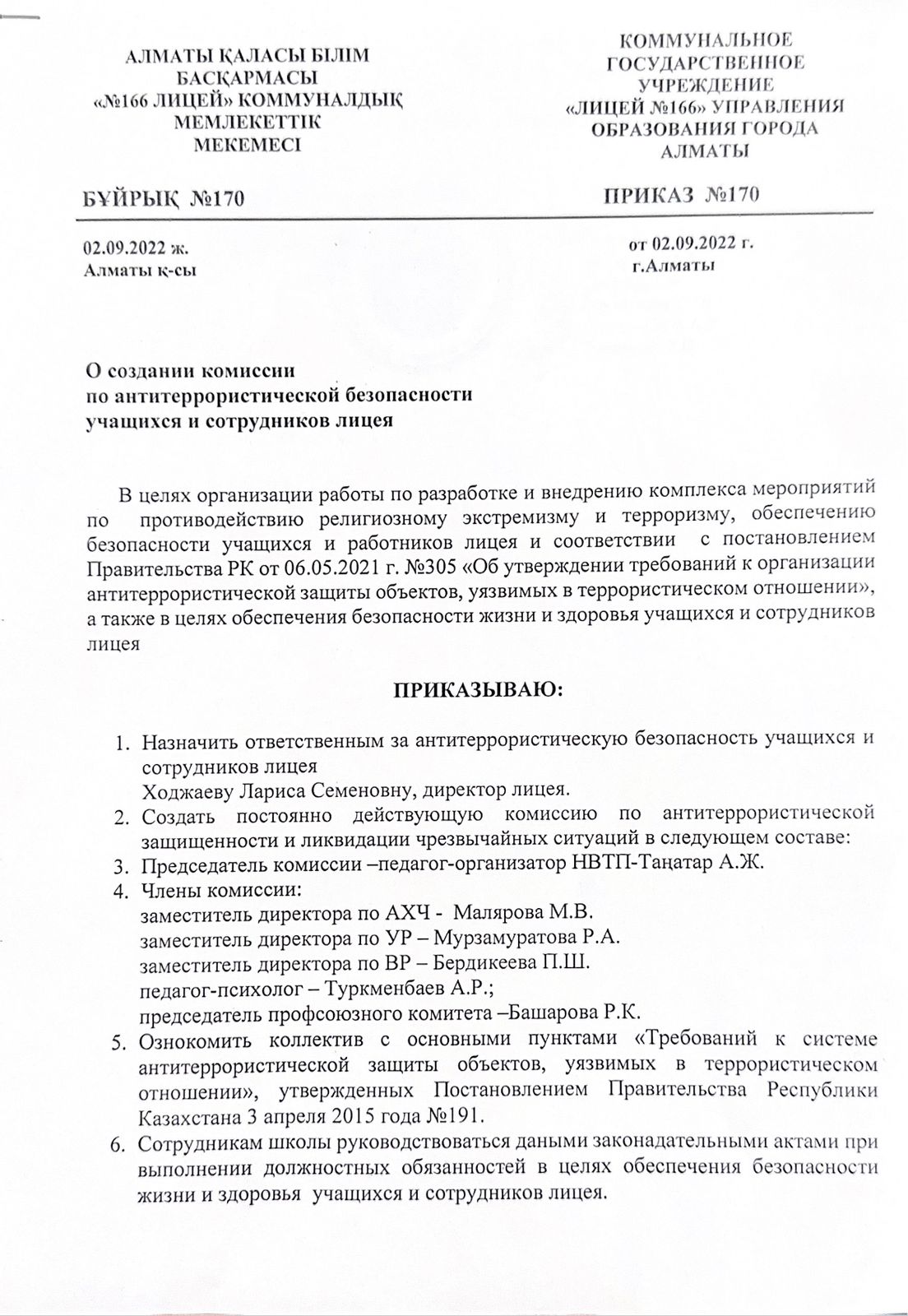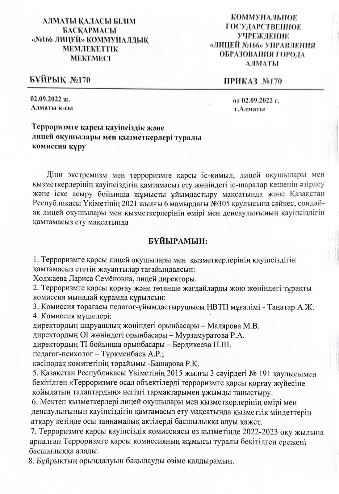 02 сентябрь 2022 0 1 2 3 4 5 Комиссия құру туралы терроризмге қарсы қауіпсіздік туралы лицей оқушылары мен қызметкерлері Комиссия құру туралытерроризмге қарсы қауіпсіздік туралылицей оқушылары мен қызметкерлеріО создании комиссиипо антитеррористической безопасностиучащихся и сотрудников лицея Осы беттің QR-коды:QR-код этой страницы: