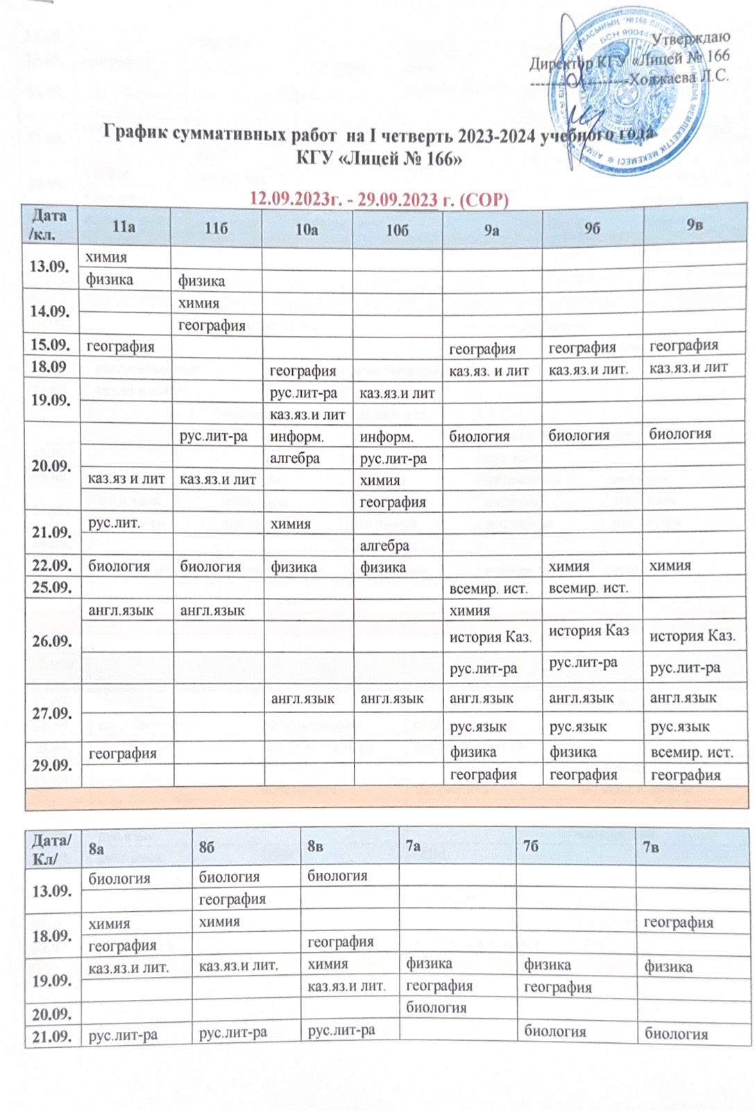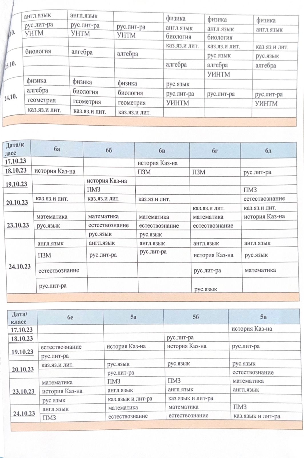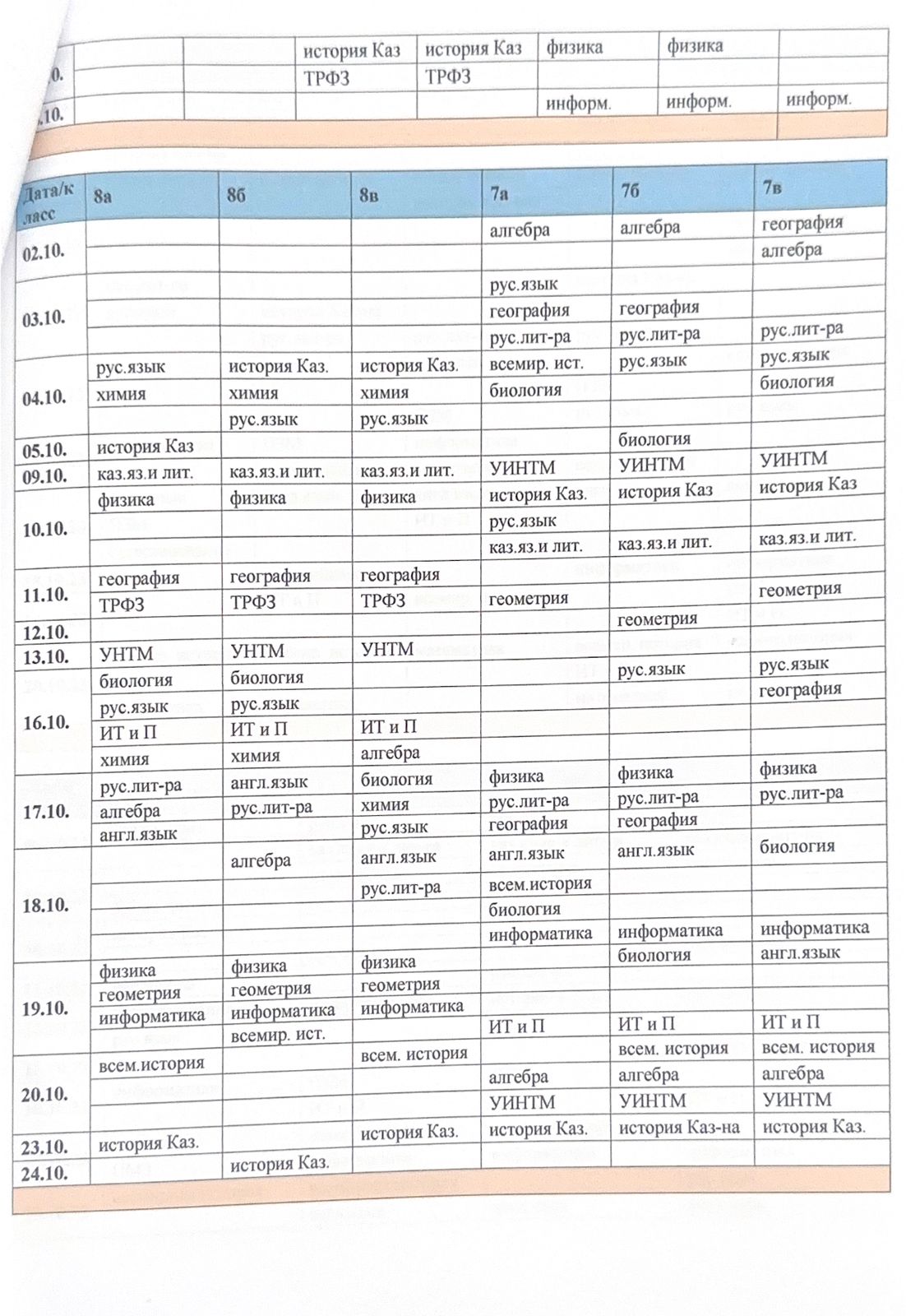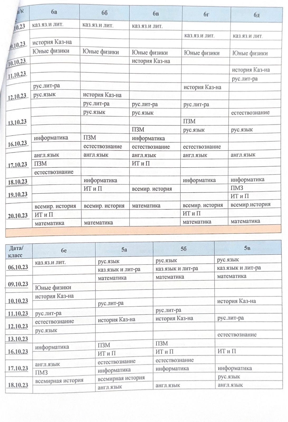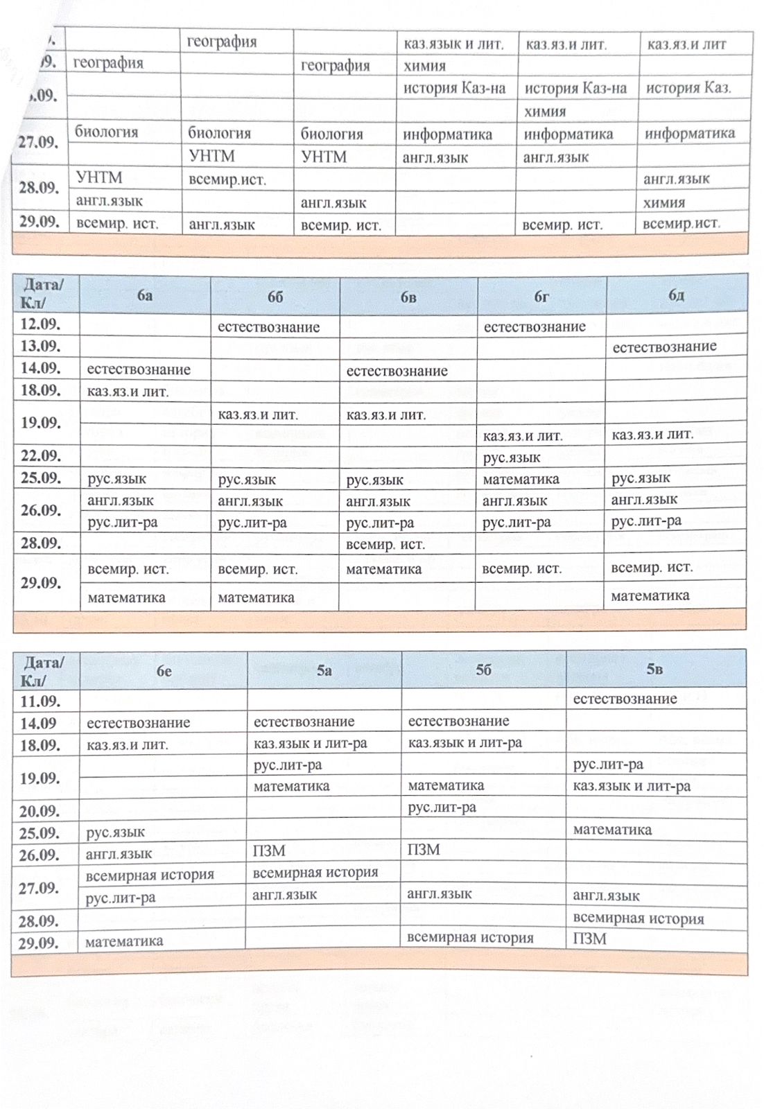 Сабақ кестесі
