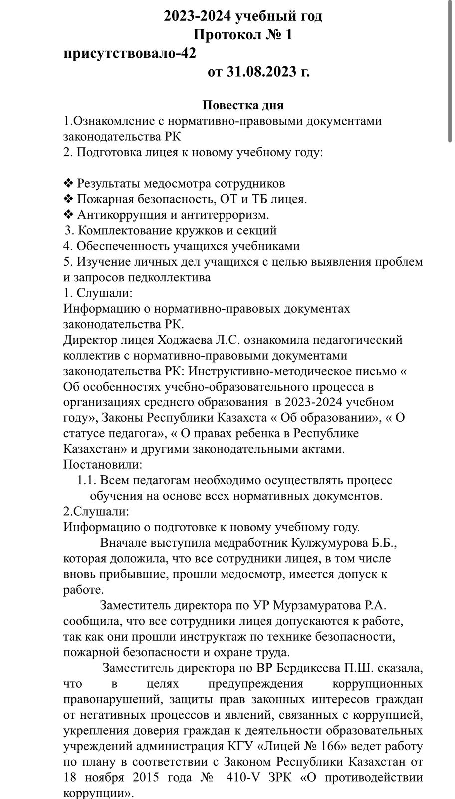 » №1 Хаттама 2023-2024 ж.