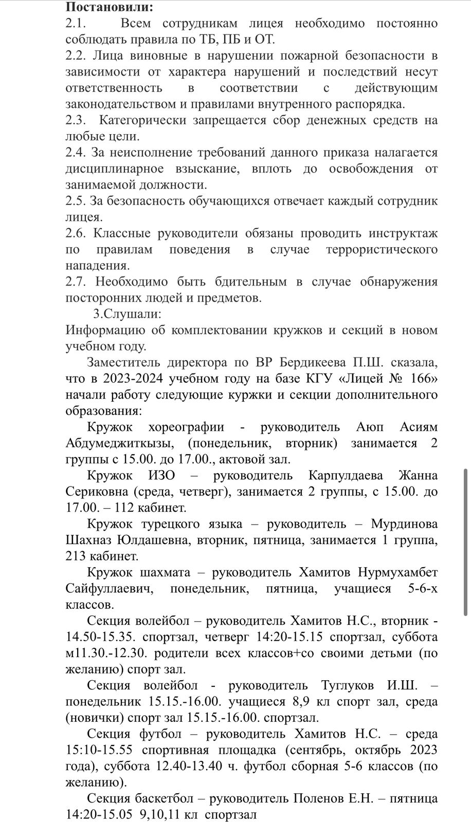 КГУ «Лицей №166» Управления образования г.Алматы