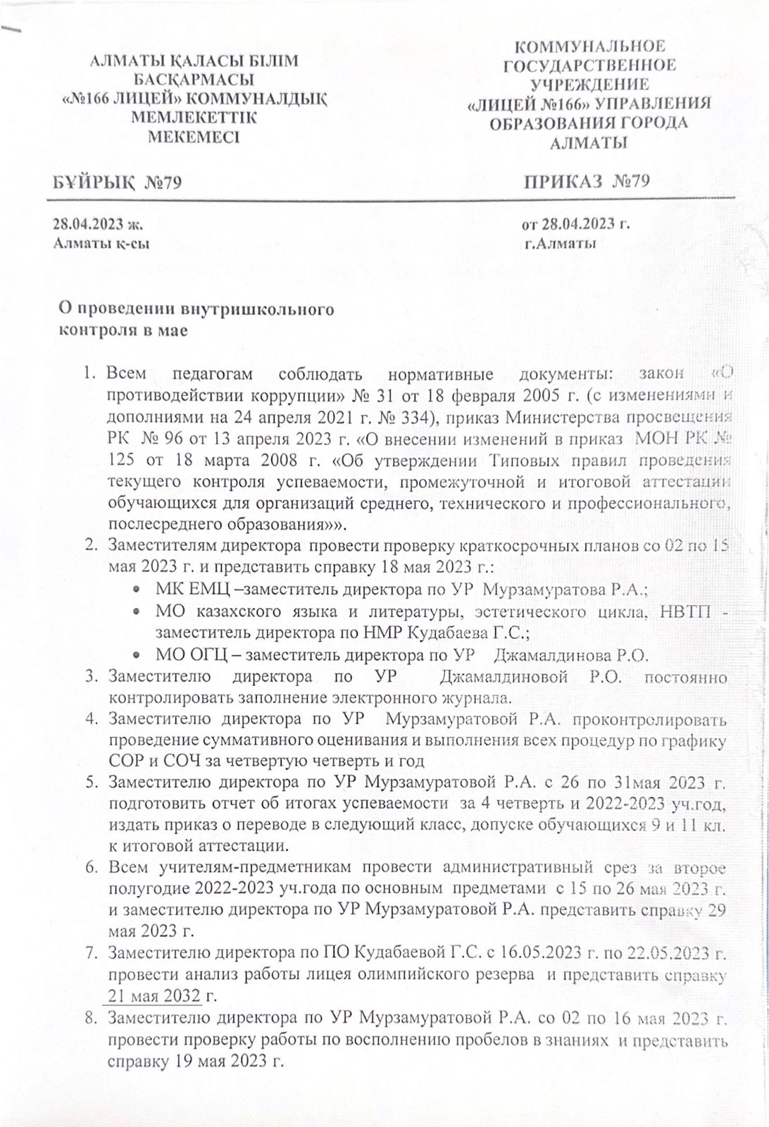 Мектепшілік бақылау жұмыс жоспары 2022-2023 г.