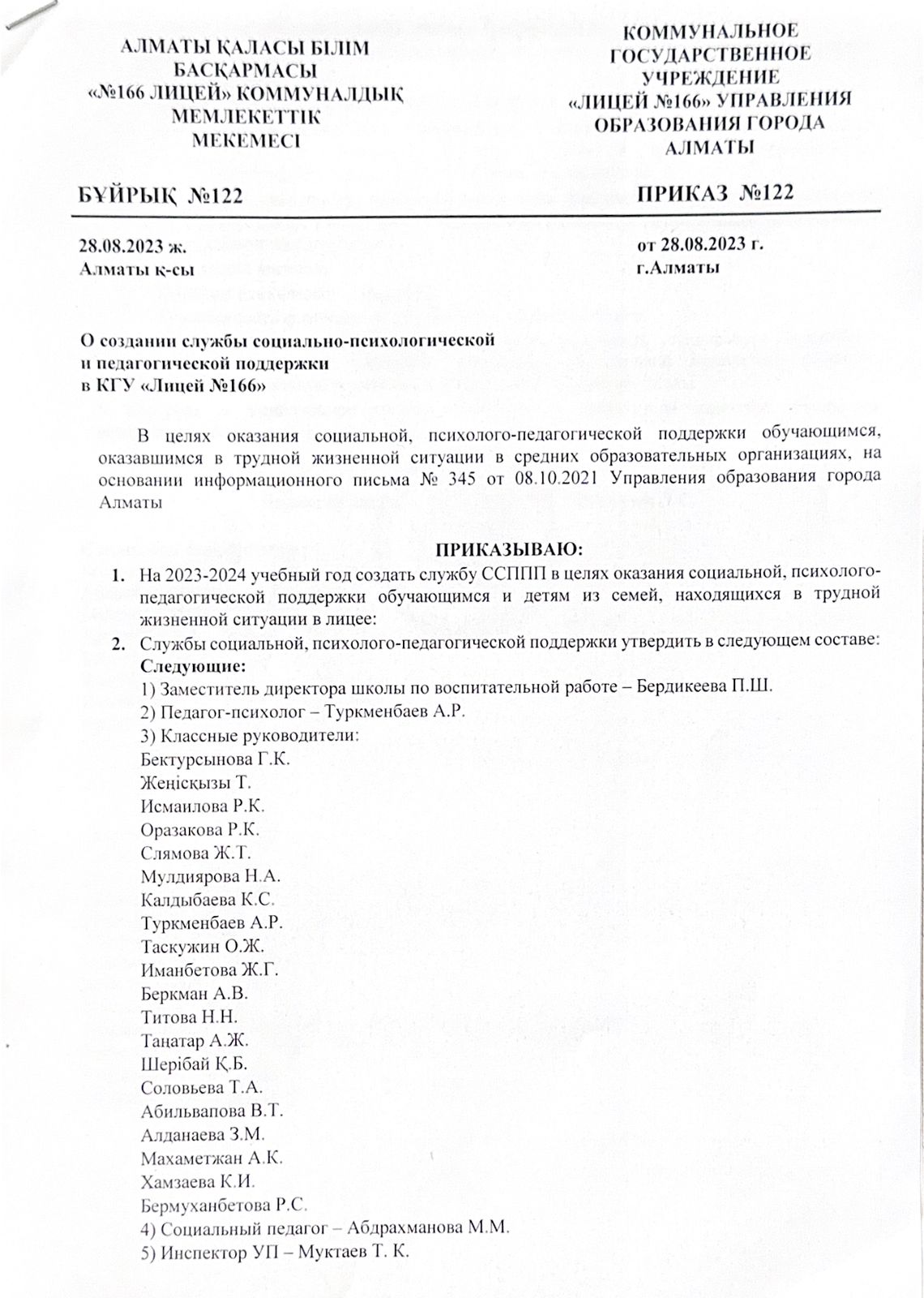 28 август 2023 0 1 2 3 4 5 Әлеуметтік-психологиялық-педагогикалық қолдау қызметін құру туралы «№166 лицей» КММ Осы беттің QR-коды:QR-код этой страницы:
